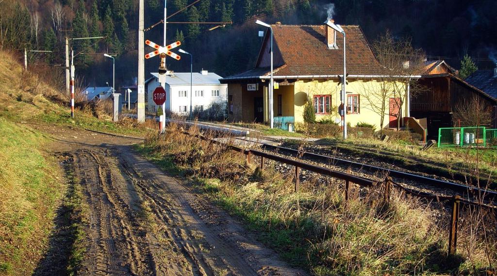 Opis ogólny: Muszyna Poprad - przystanek osobowy położony na wys. ok. 450 m n.p.m w Muszynie, w osiedlu Muszyna Folwark, przy ul. Kościuszki nr 120. ---- Przystanek osobowy: km początku 141,750, km końca 141,800. --- Numer Kurs'90: 3187 --- (info: Serg, 13-06-2010) Opis infrastruktury: Peron: jednokrawędziowy, umiejscowiony po lewej stronie toru w kierunku Leluchowa, o długości 50 m (km początku 141,750, km końca 141,800). --- Wskaźniki przytorowe w obrębie przystanku: W6a w kierunku Leluchowa - 1, W32 w kierunku Leluchowa i Muszyny - 2. --- (info: Serg, 13-06-2010) Opis budynków: Zabudowa: Budynek stacyjny jednokondygnacyjny murowany z cegły, otynkowany pokryty dachem ceramicznym. 3/4 powierzchni stanowi mieszkanie z wejściem od ulicy. Pozostała część - jedno pomieszczenie służbowe nieczynne, z wejściem zadaszonym formą wiaty murowanej od strony peronu. Poczekalnię stanowią 2 ławki ustawione pod tym zadaszeniem . - Budynki gospodarcze: szopa drewniana, komórki murowane. Od strony ulicy ogrodzone siatką metalową na podmurówce z furtką i bramą wjazdową. --- Przed budynkiem stacyjnym od strony ulicy studnia z pompą ręczną. --- --- (info: Serg, 13-06-2010) |