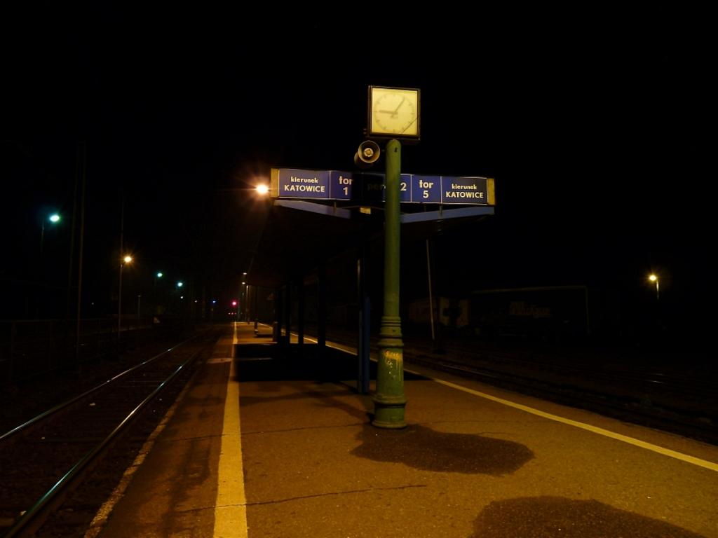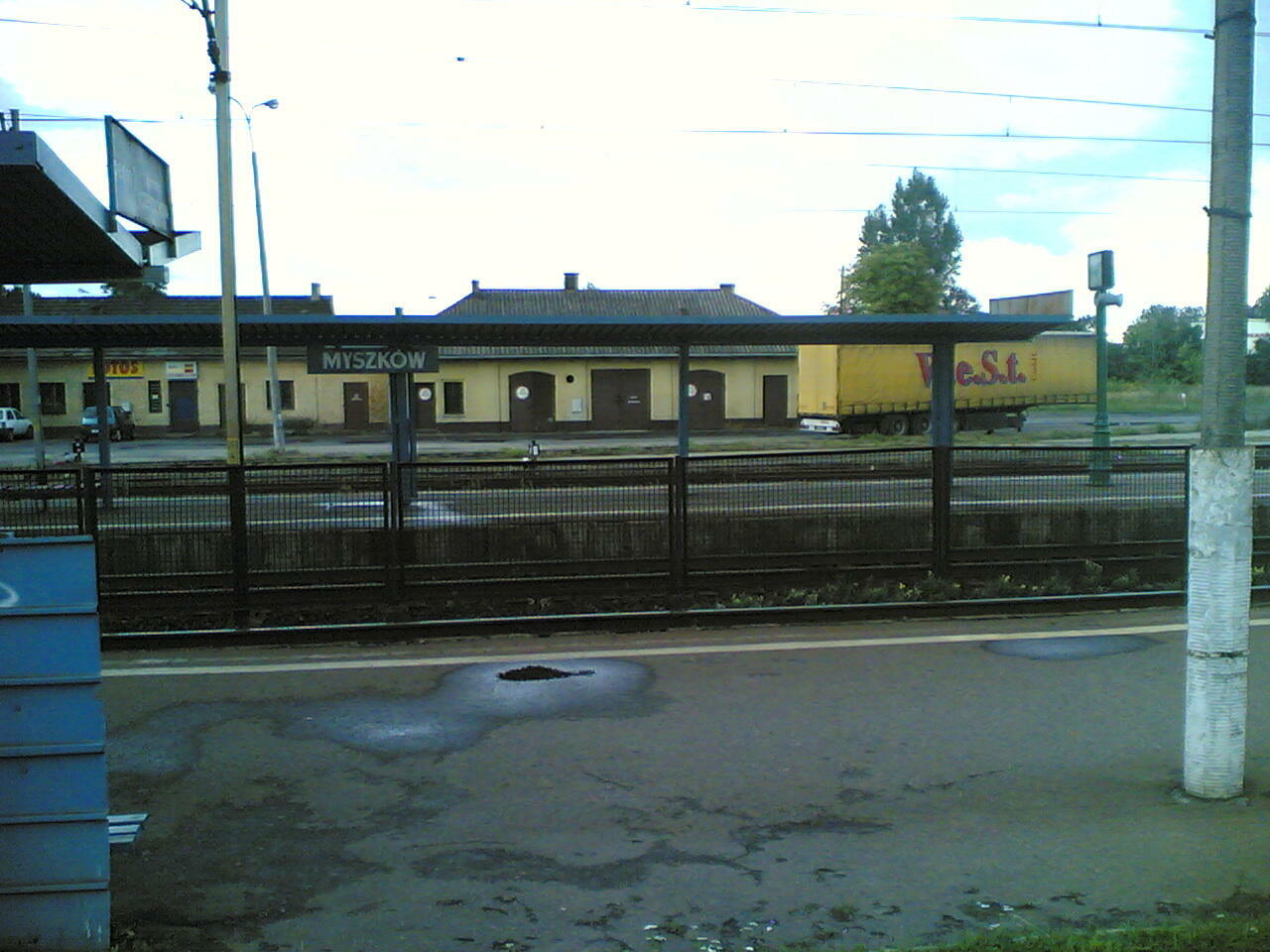 Na peronie w Myszkowie. Widok w kierunku Katowic.