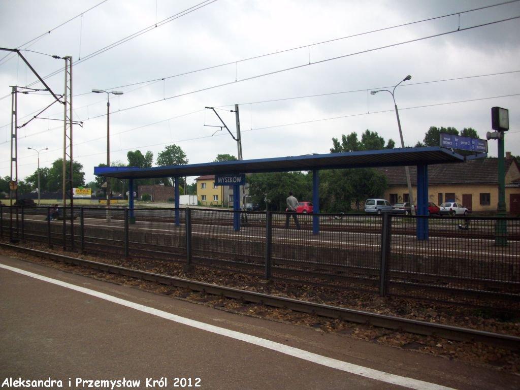Perony w Myszkowie. W prawo Częstochowa, w lewo Zawiercie.