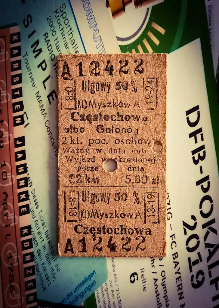 Bilet kartonikowy wydany na stacji Myszków.