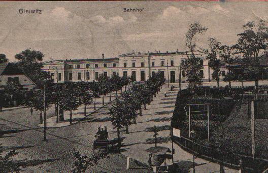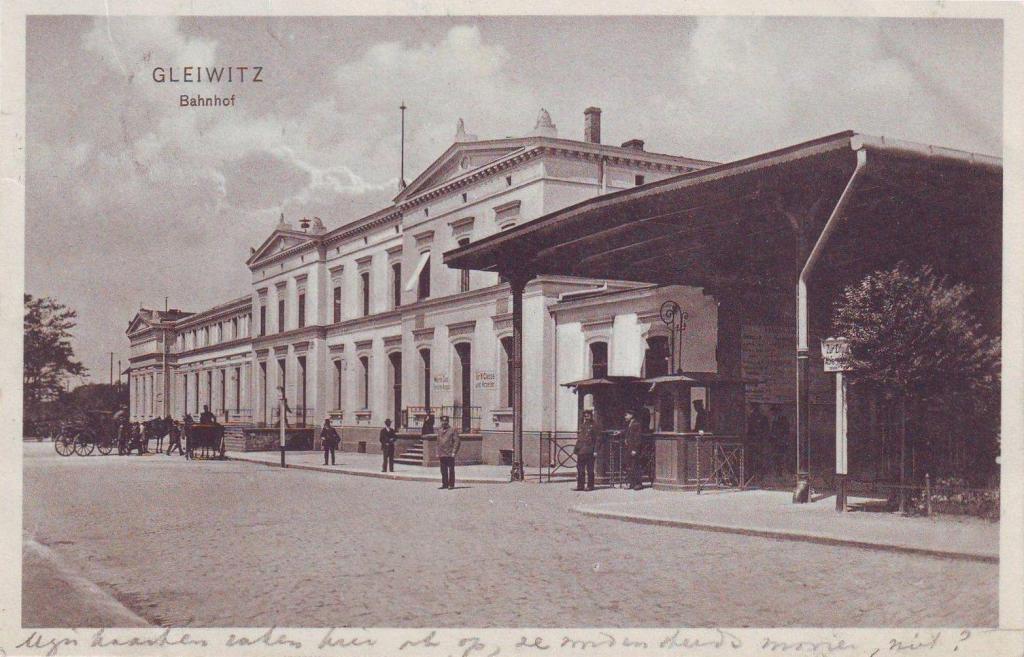 Pierwszy budynek dworca kolejowego w Gliwicach.