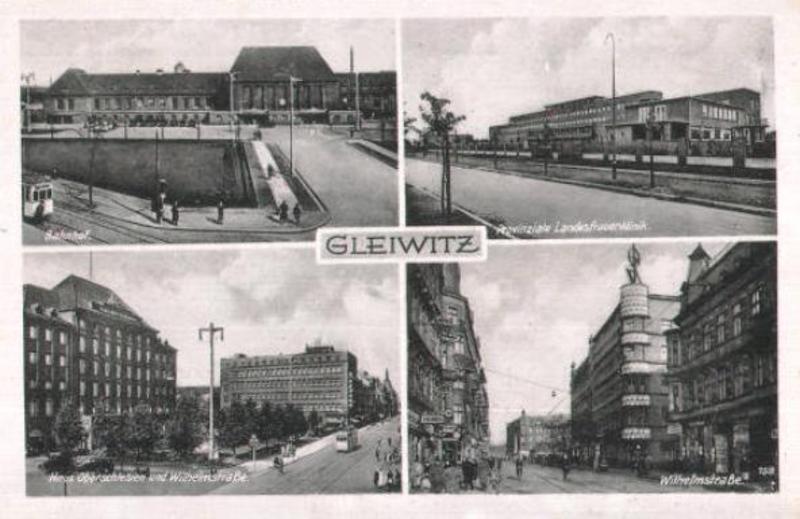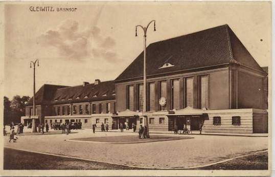 Dworzec kolejowy w Gliwicach (Gleiwitz O/S) w 1927 roku. Widok od strony miasta.