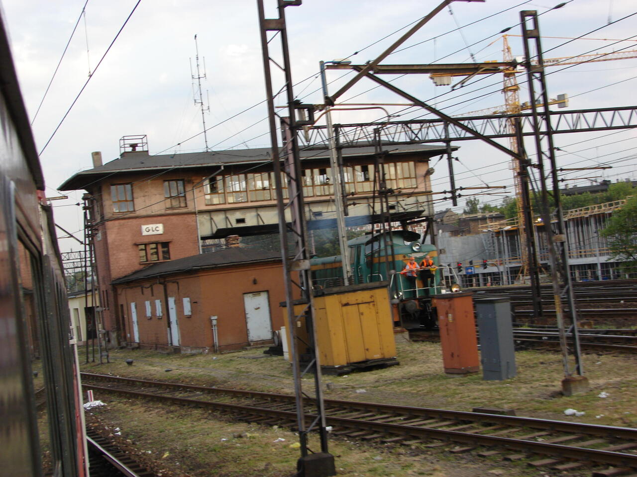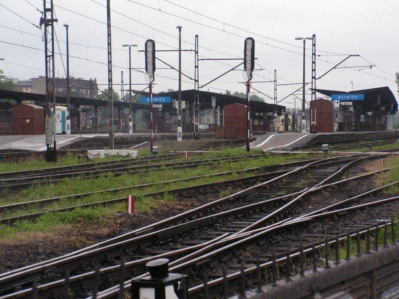 Nastawnia GLC za którą sa perony stacji Gliwice. Widok od strony wjazdów z Bytomia i Zabrza.