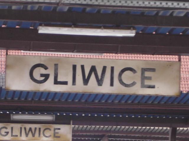 Widok na perony i otoczenie stacji Gliwice z bardzo nietypowego miejsca - nieczynnej wieży ciśnień dawnej Huty Gliwice. Budynek dworca jest niewidoczny, zasłaniają go drzewa po lewej stronie zdjęcia, po prawej nad kamienicą widoczna opisywana wieża wodna z 1912 roku.