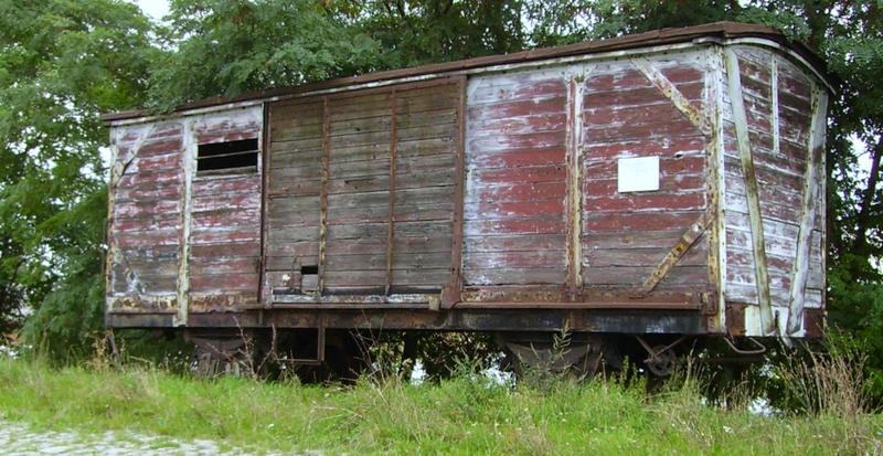 Zabytkowy wagon stojący na bocznicy,