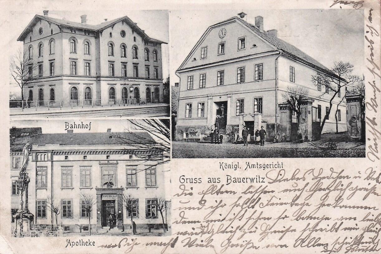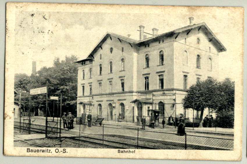 Baborów, dworzec, zdjęcie z pocztówki wysłanej z pociagu 835 Deutsch Rassewitz - Kattowitz w 1924 roku. Widok w kierunku północno-wschodnim; w lewo Głubczyce, Kędzierzyn-Koźle, w prawo Pietrowice Wielkie/Racibórz, Opawa.