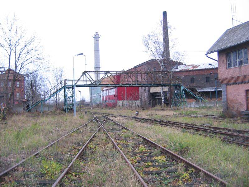 Kładka nad torami. Po prawej fragment nastawni dysponujące Bw. W tle Cukrownia Baborów. Widok w kierunku północno-zachodnim; Głubczyce, Polska Cerekiew (dawniej dalej, do Kędzierzyna-Koźla).