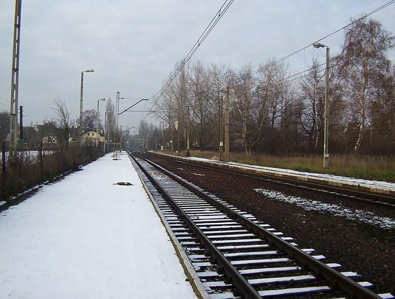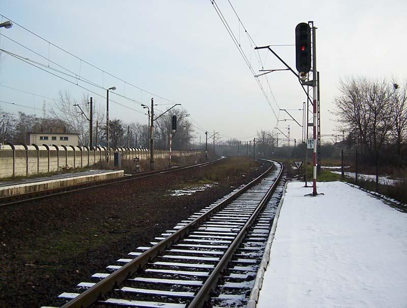 Poznań Dębina - koniec peronu 2, tory od strony Poznań Główny.