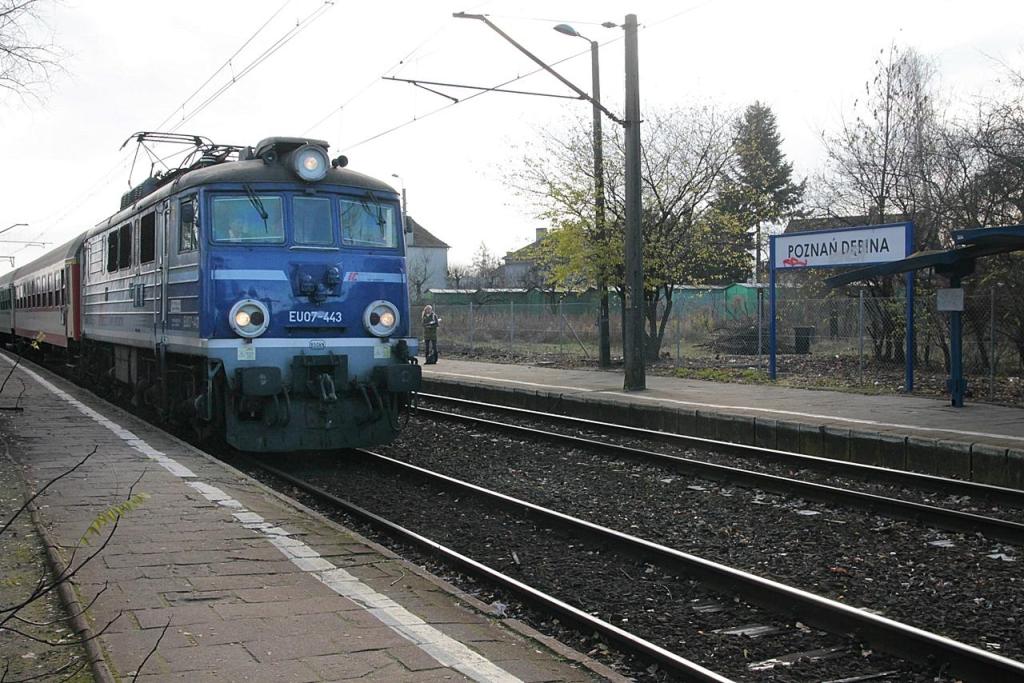 Poznań Dębina - przejazd TLK "Gwarek" do stacji Poznań Główny.