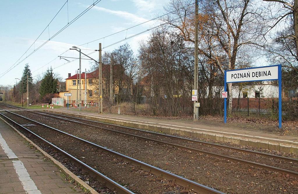Poznań Dębina - po lewej tory kierunek Poznań Główny, po prawej bocznica HCP.