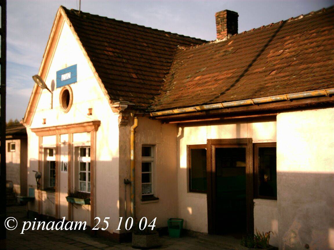 Iwin. Budynek dworca od strony peronów i wjazdu ze Szczecinka. Mieści się w nim nastawnia dysponująca.