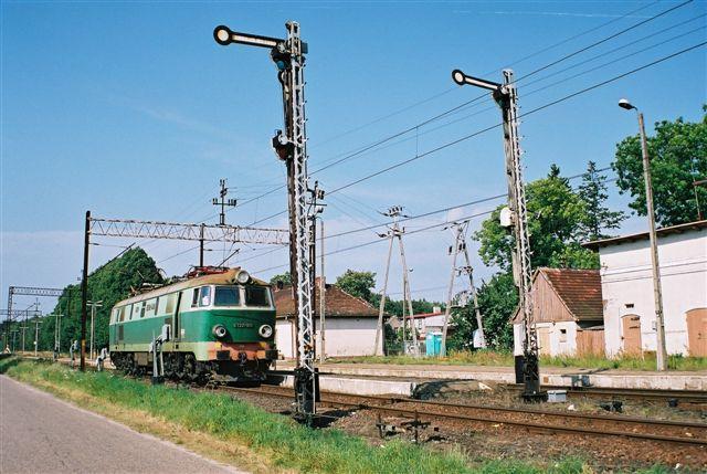 ET22-910 w Iwinie. Widok od strony Szczecinka. W tle perony i dworzec.