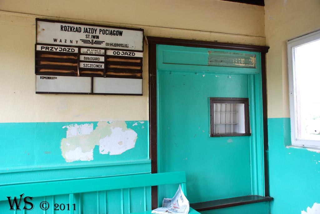 Iwin. Podpatrzone przez otwarte okno nastawni w budynku stacji.
