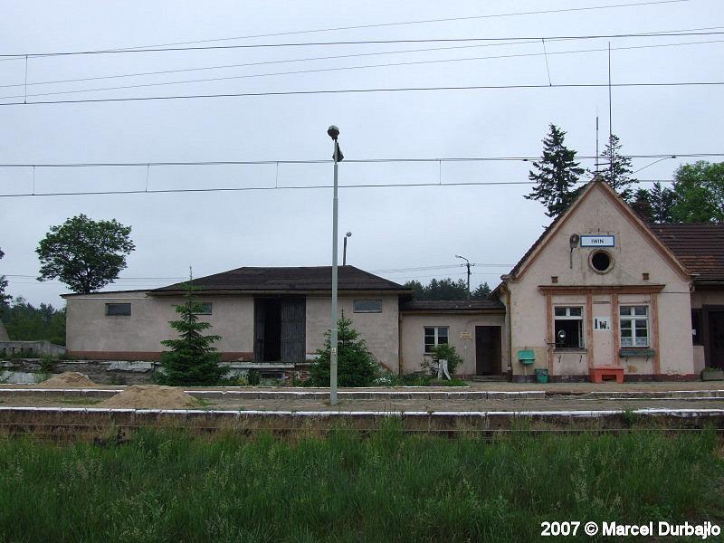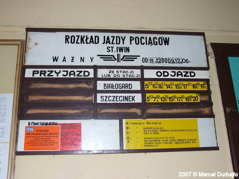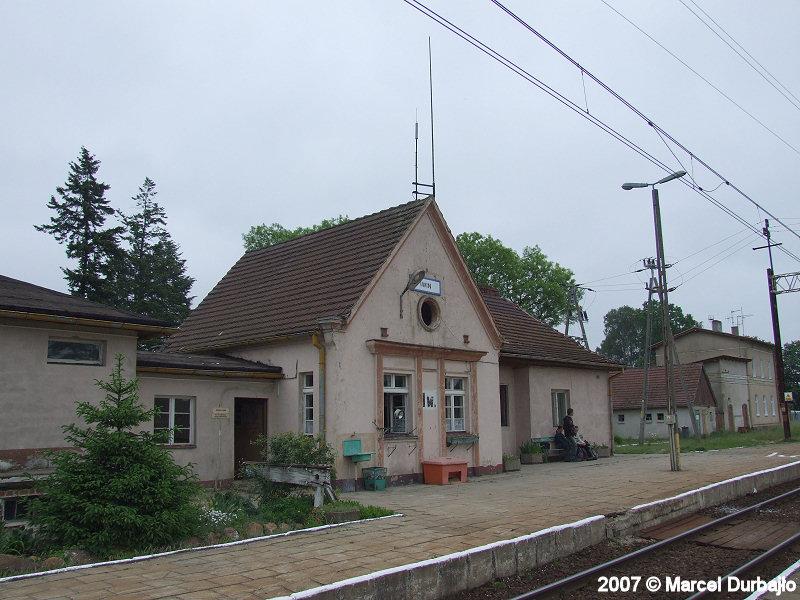 Iwin. Budynek dworca od strony peronów. W lewo Grzmiąca/Białogard, w prawo Szczecinek.