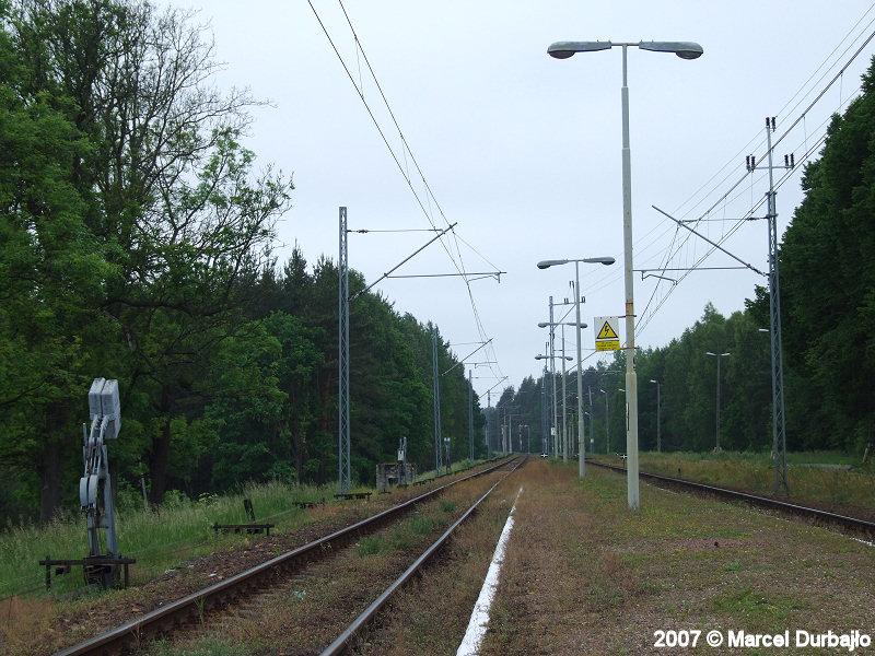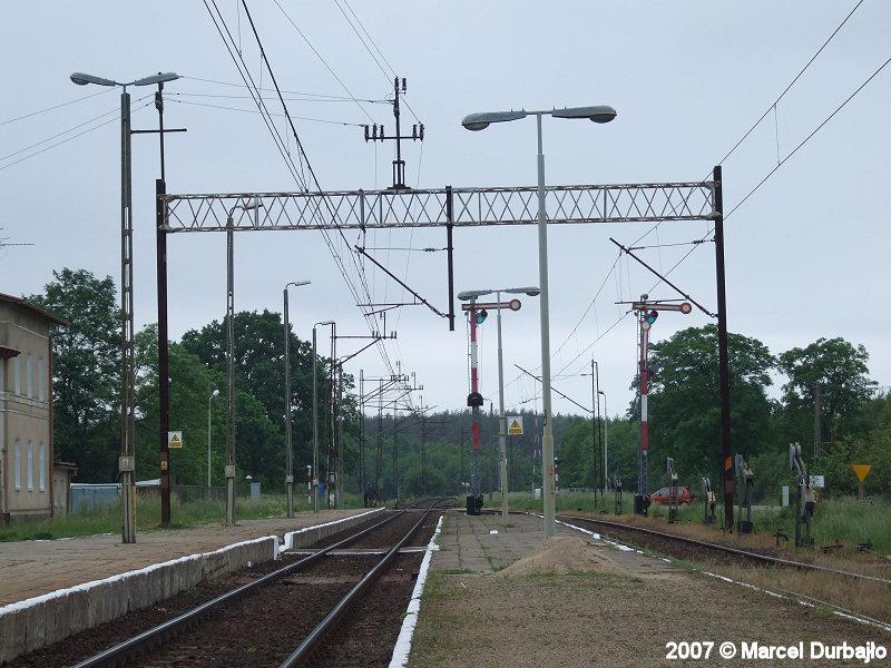 Iwin. Widok na semafory wyjazdowe w kierunku Szczecinka.