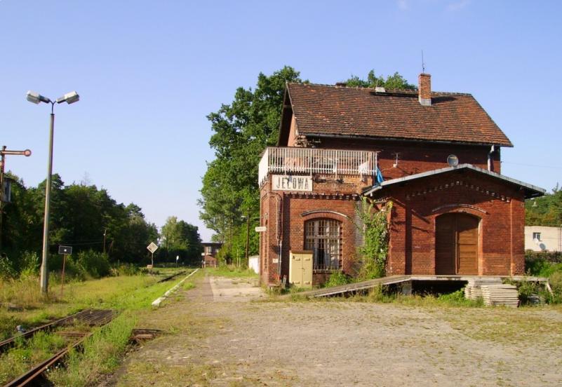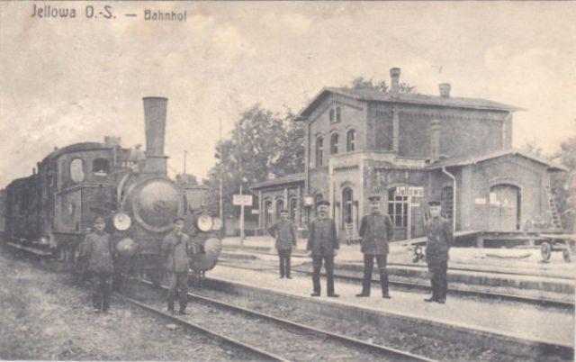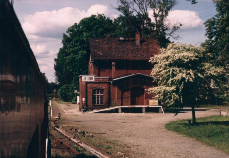 Jełowa jeszcze z pociągu planowego, w moje urodziny. W tle budynek dworca z przybudówką nastawni. Na horyzoncie nastawnia wykonawcza. Widok od strony Opola.