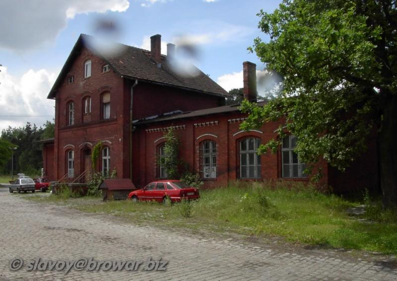Budynek dworca z przybudówką nastawnia. Widok w kierunku północnym, od strony wjazdu z Opola.