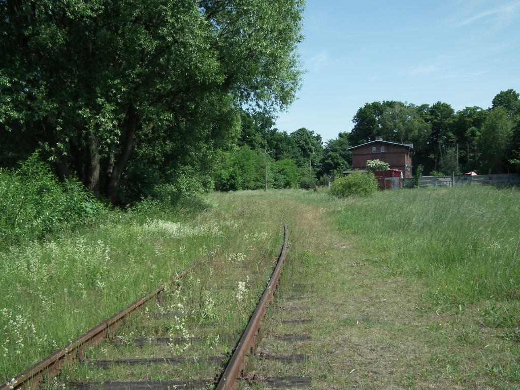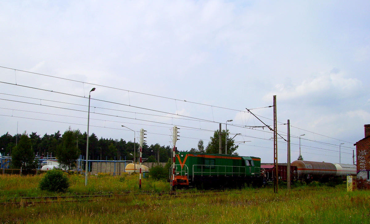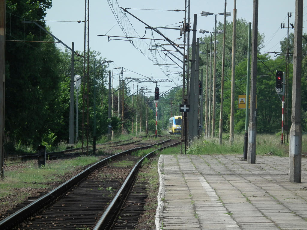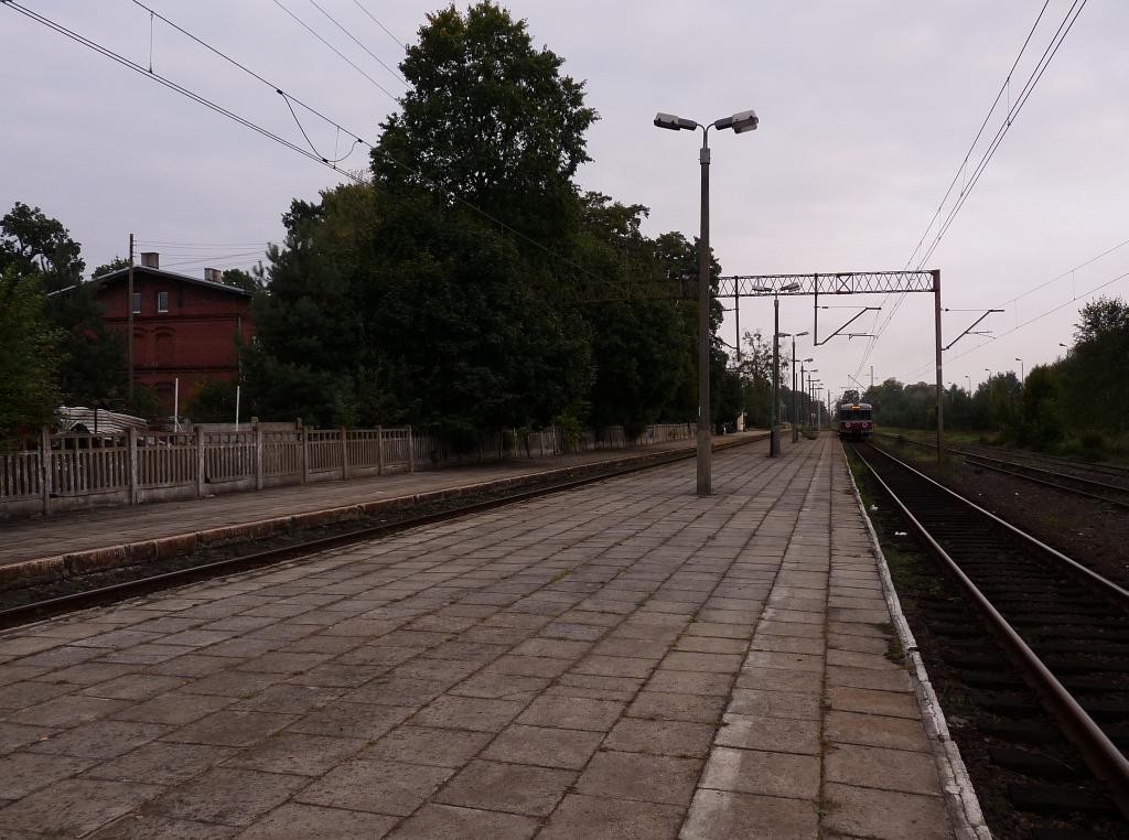 Peron 2. Wylot na Tarnowskie Góry. Po prawej widoczne dwa składy towarowe. Drugi od lewej to skład cystern czekający na wjazd do pobliskiej rozlewni gazu.