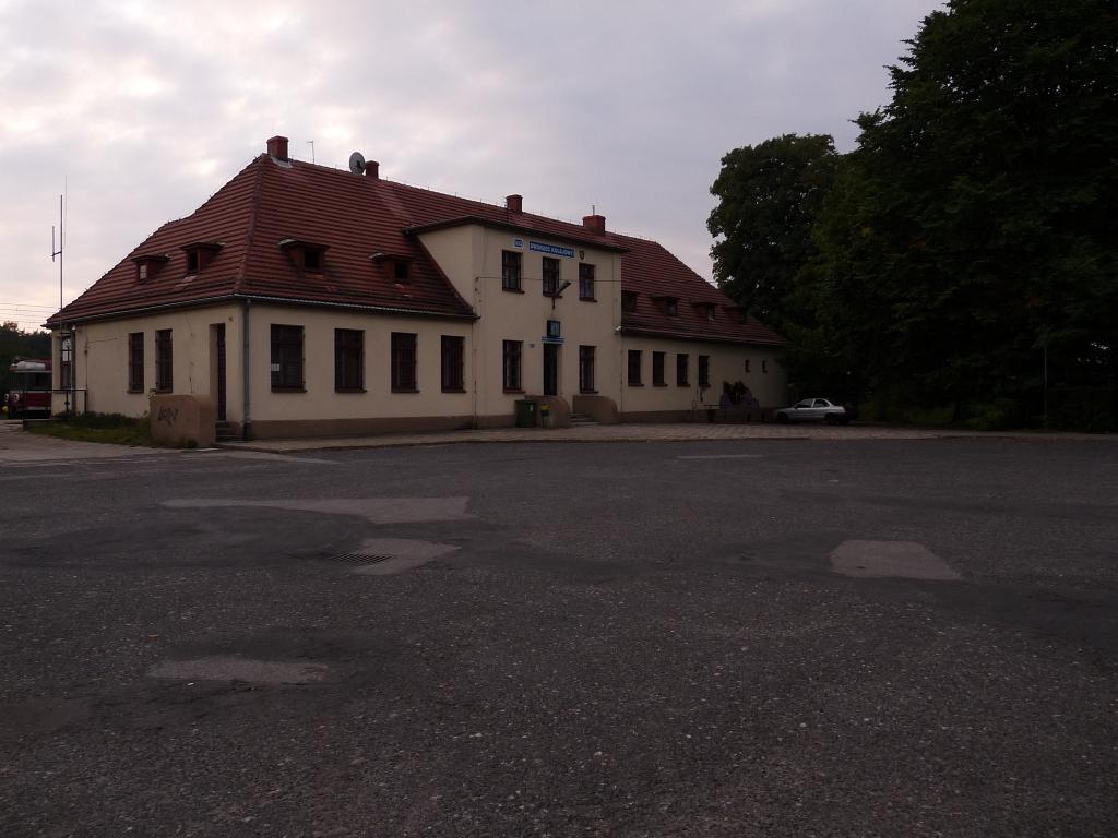 Zawadzkie. Widok na dworzec od strony miasta. Plac koło dworca pełni od niedawna rolę dworca PKS.