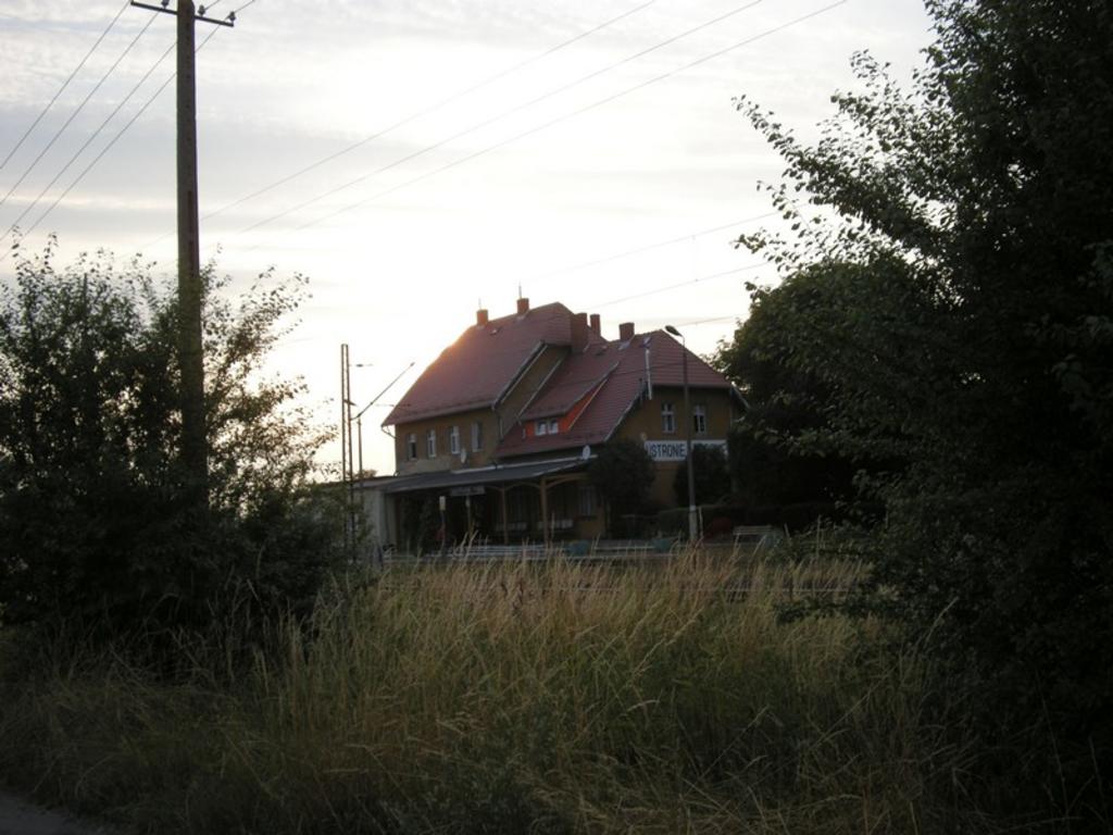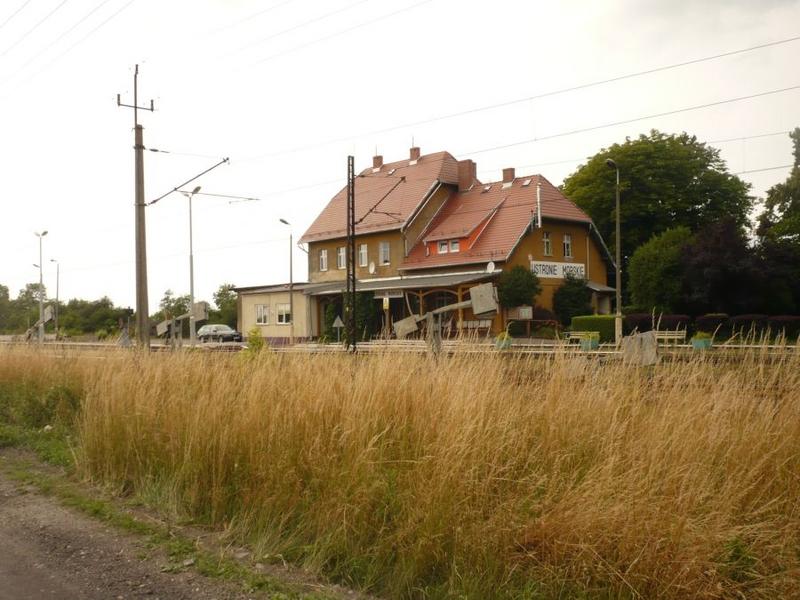 Ustronie Morskie. W rogu przybudowanej nastawni-tam gdzie widac podroznego- od srodka byla winda rogatkowa; dyzurny musial przez " zarosla " obserwowac przejazd i podobnie zarosnieta rogatke.