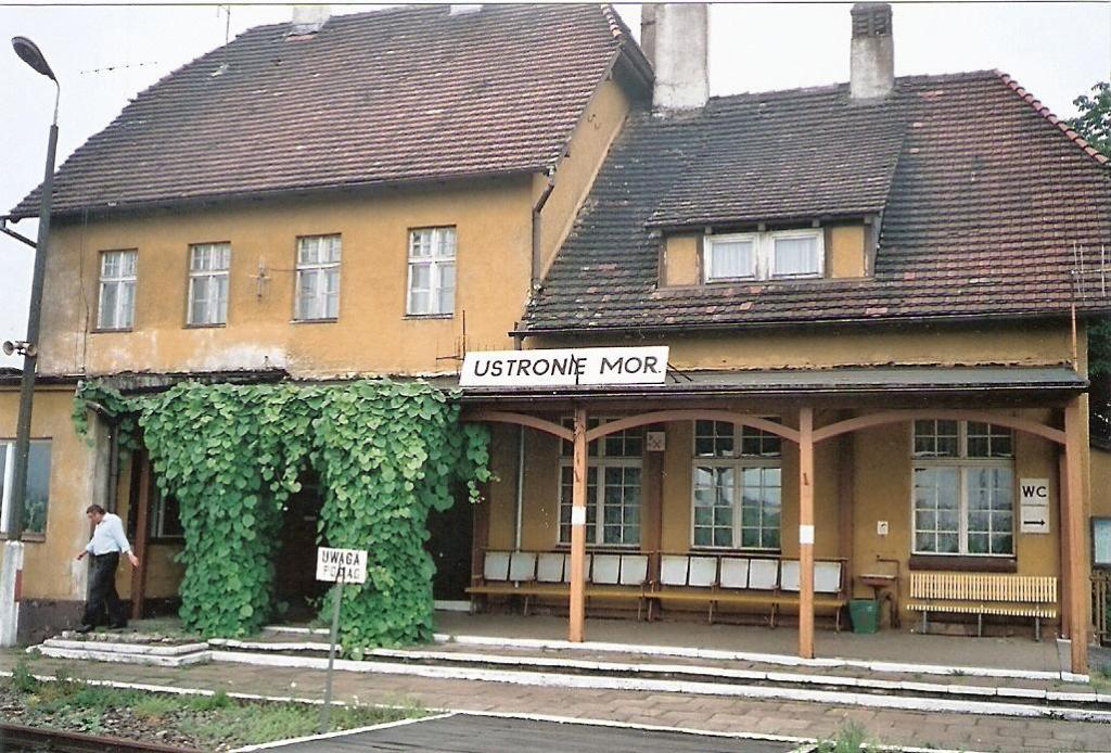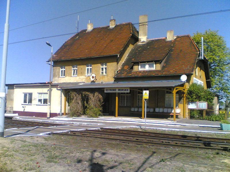 Stacja Ustronie Morskie oraz pociag Regio z Koszalina do Kołobrzegu.