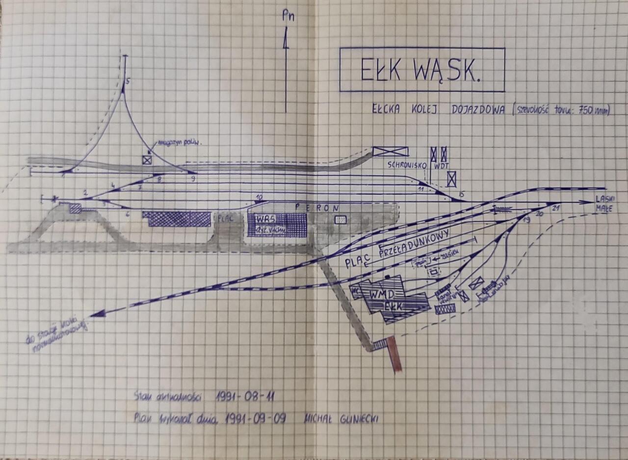 Plan stacji Ełk Wąskotorowy - stan na dzień 11-08-1991 r.