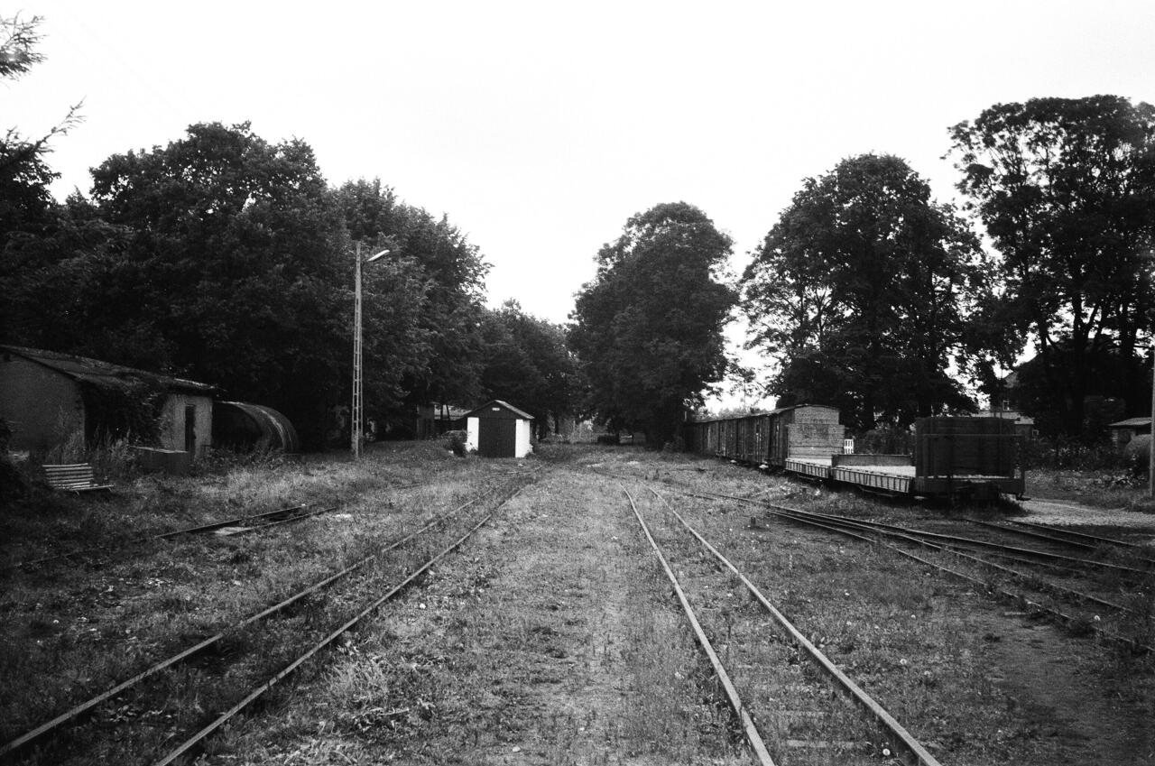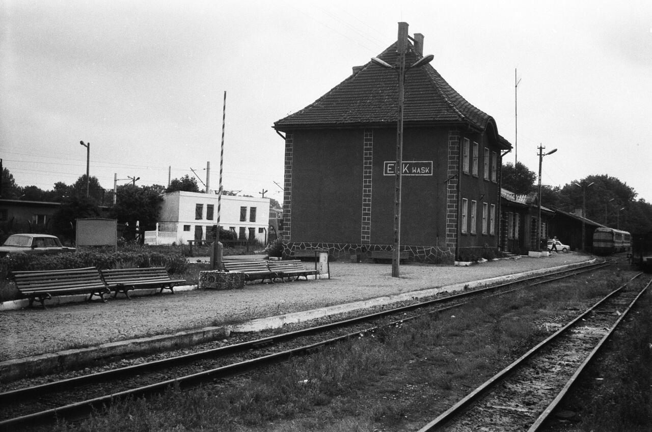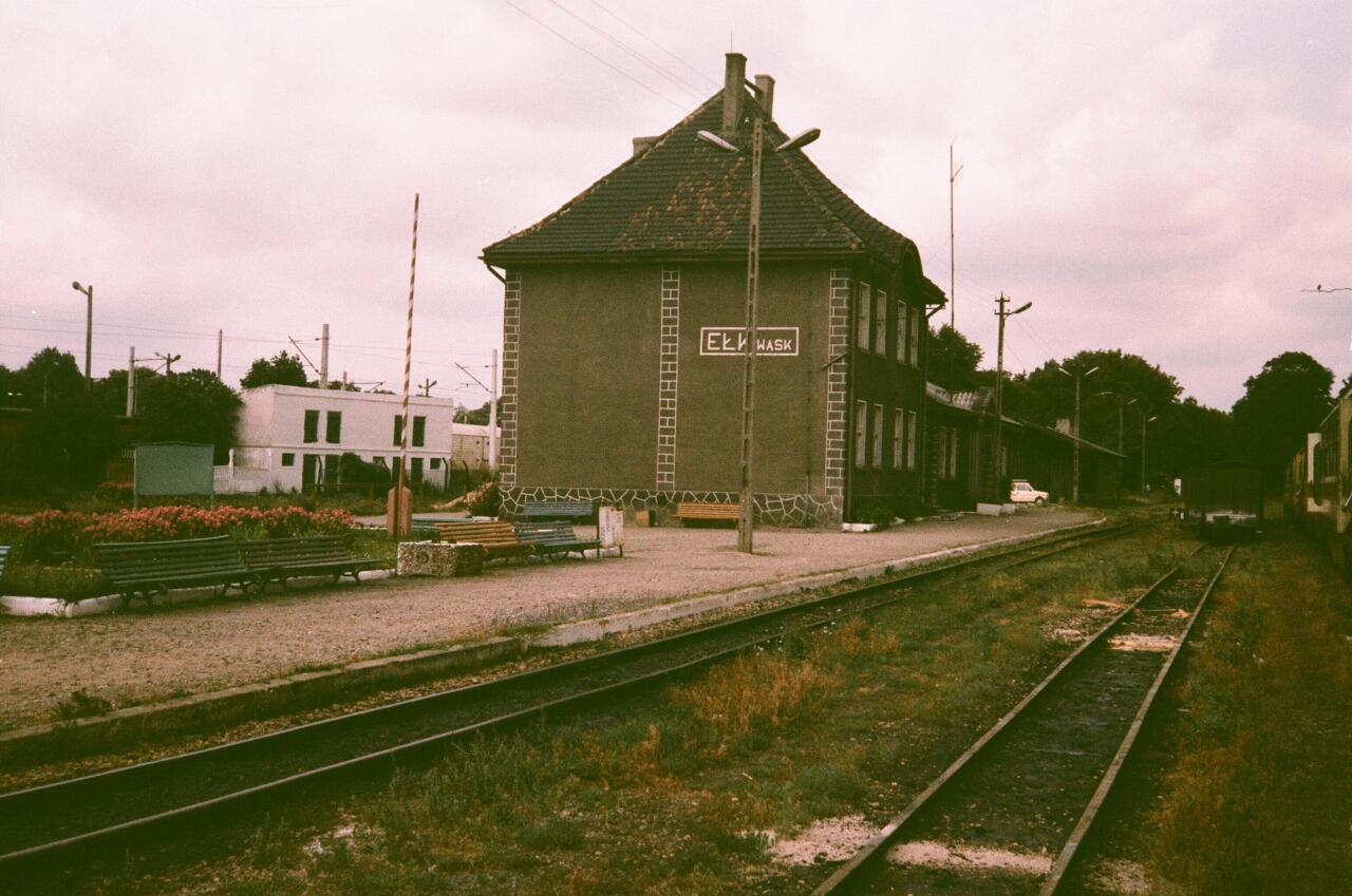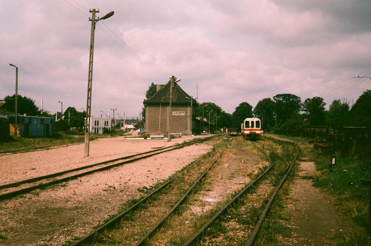 Stacja Ełk Wąskotorowy - budynek stacyjny - widok w kierunku końca linii.
