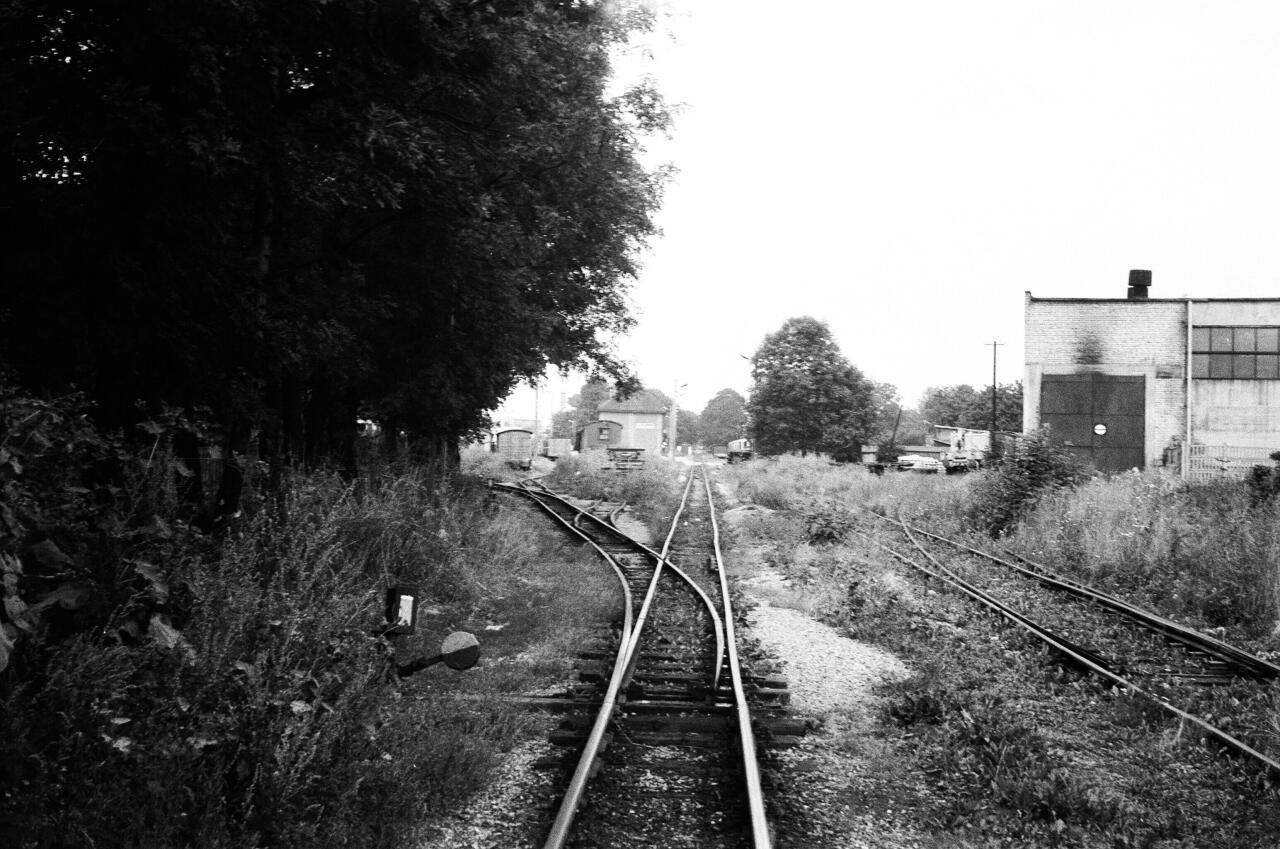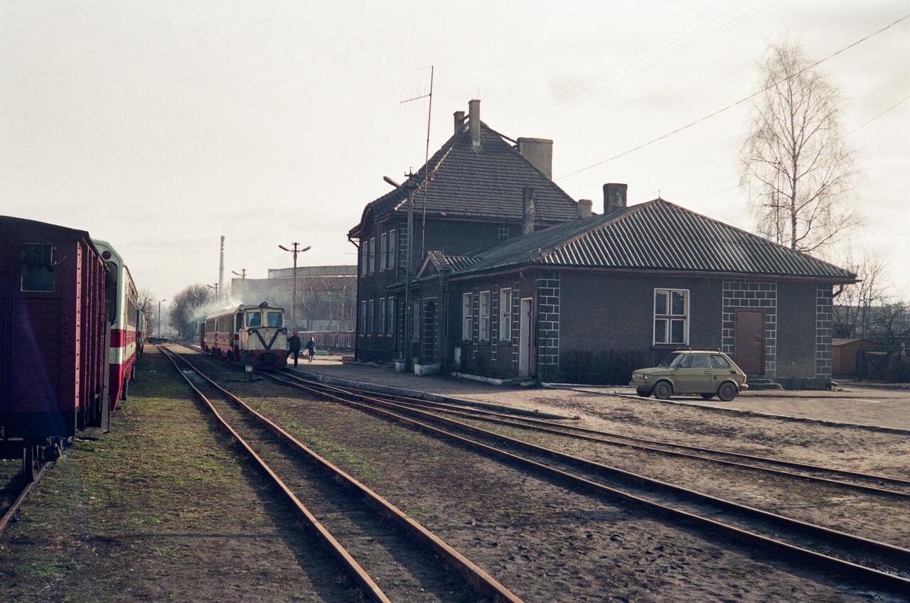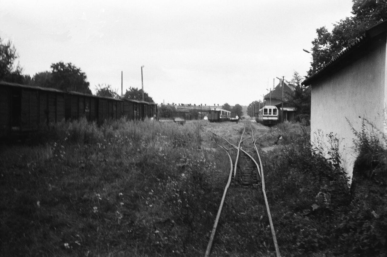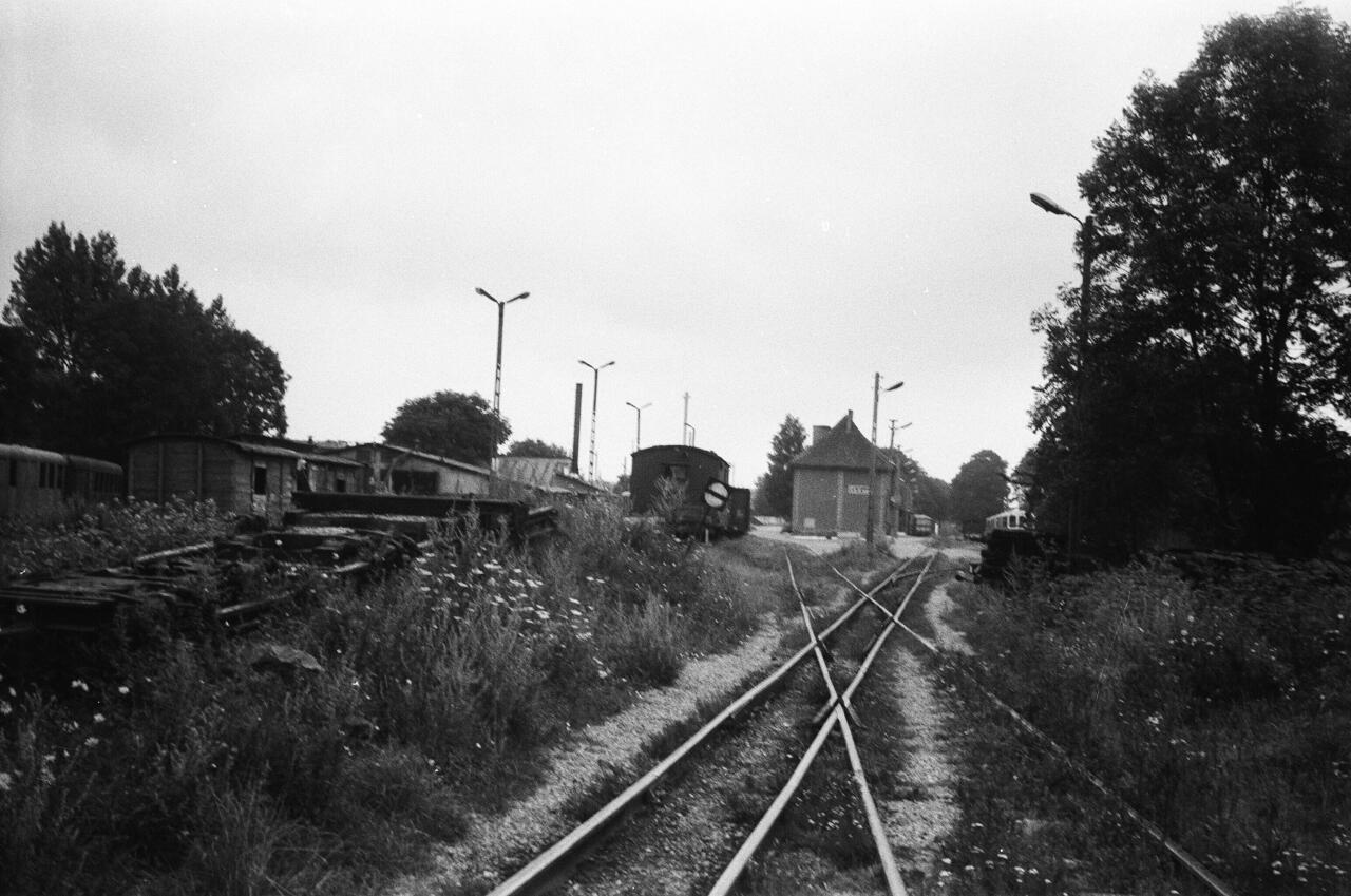 Stacja Ełk Wąskotorowy - budynek stacyjny - widok w kierunku końca linii.