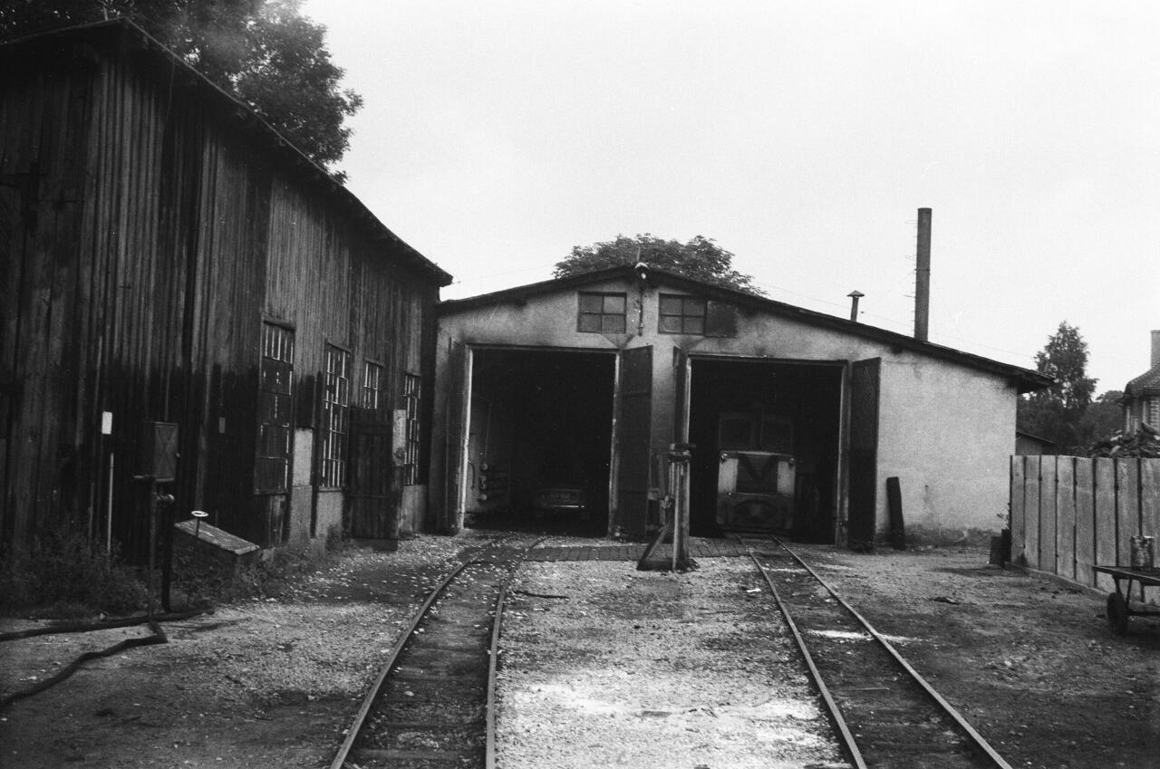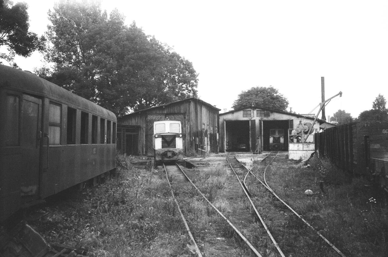 Stacja Ełk Wąskotorowy - garaż dla drezyn, widok w kierunku końca linii.