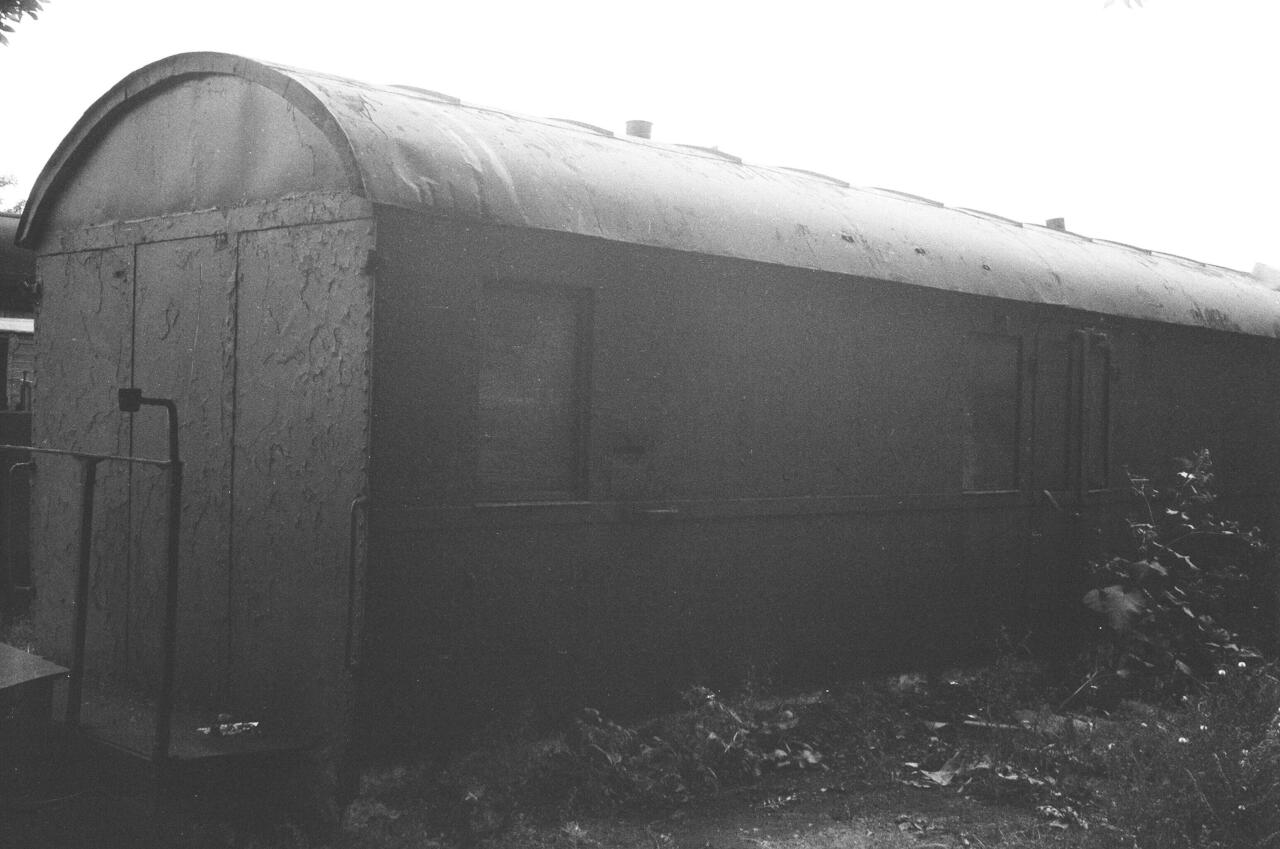Stacja Ełk Wąskotorowy - pudło normalnotorowego wagonu pocztowo - bagażowego konstrukcji niemieckiej użytkowane jako magazyn podręczny przy warsztacie mechanicznym miejscowej lokomotywowni.