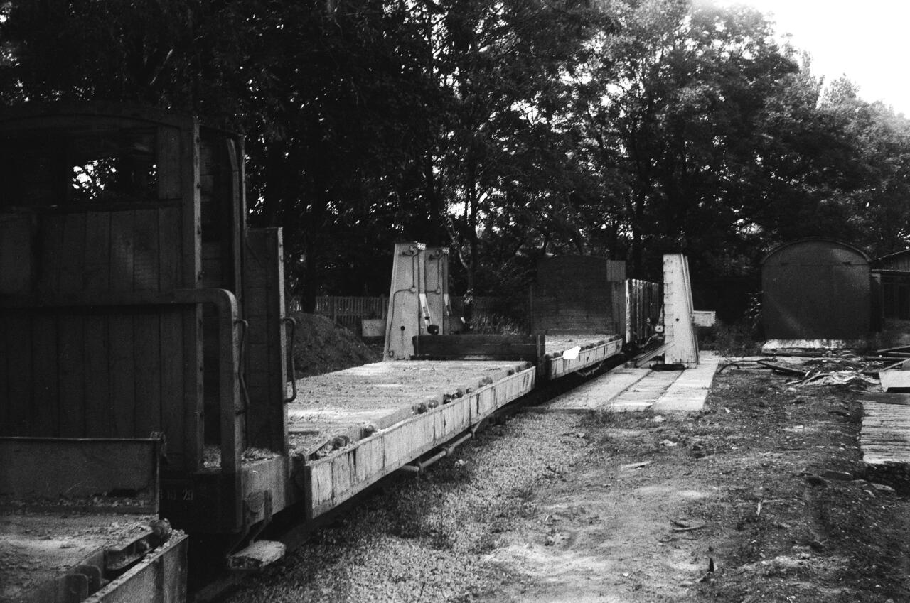Stacja Ełk Wąskotorowy - kanał rewizyjny z podnośnikami Kutruffa, z prawej pudło normalnotorowego wagonu pocztowo - bagażowego konstrukcji niemieckiej użytkowane jako magazyn podręczny przy warsztacie mechanicznym miejscowej lokomotywowni. Widok w kierunku końca linii.