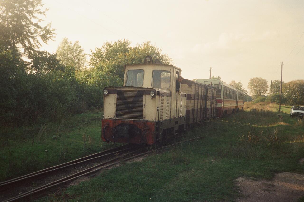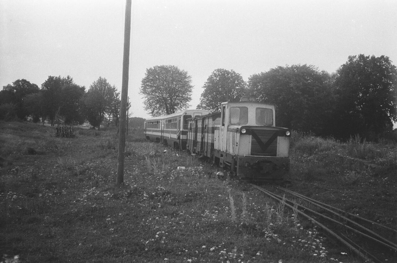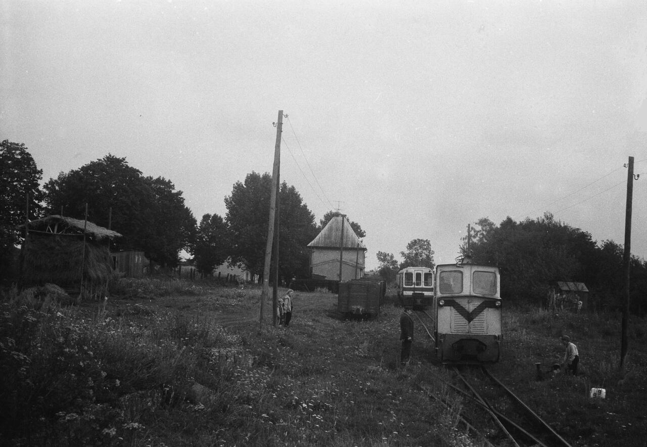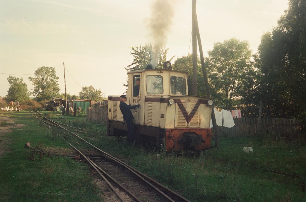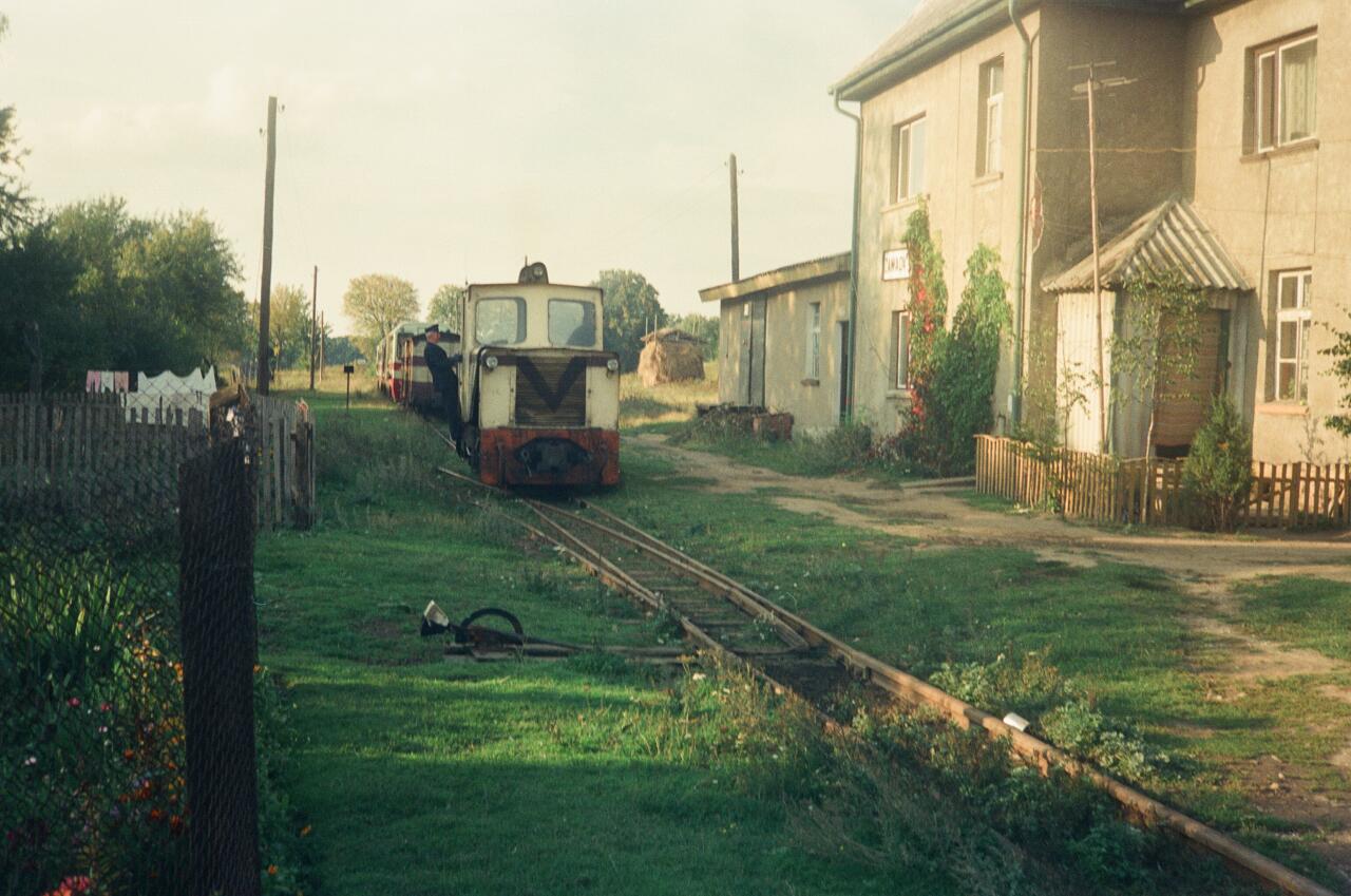 Przystanek osobowy, ładownia Zawady Tworki - pociąg OS 18153 relacji Ełk Wąskotorowy - Zawady Tworki, prowadzony lokomotywą Lyd1-221 skończył bieg, z lewej tor oblotowy. Widok w kierunku stacji Laski Małe.