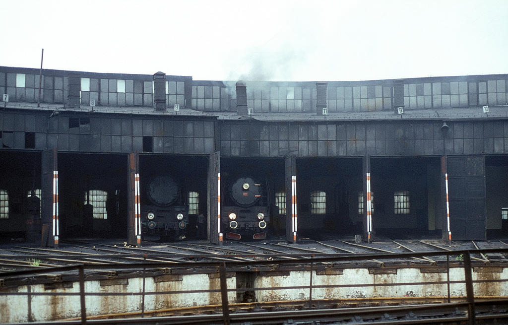 Teigreki stojące na stanowiskach lokomotywowni w Pyskowicach.