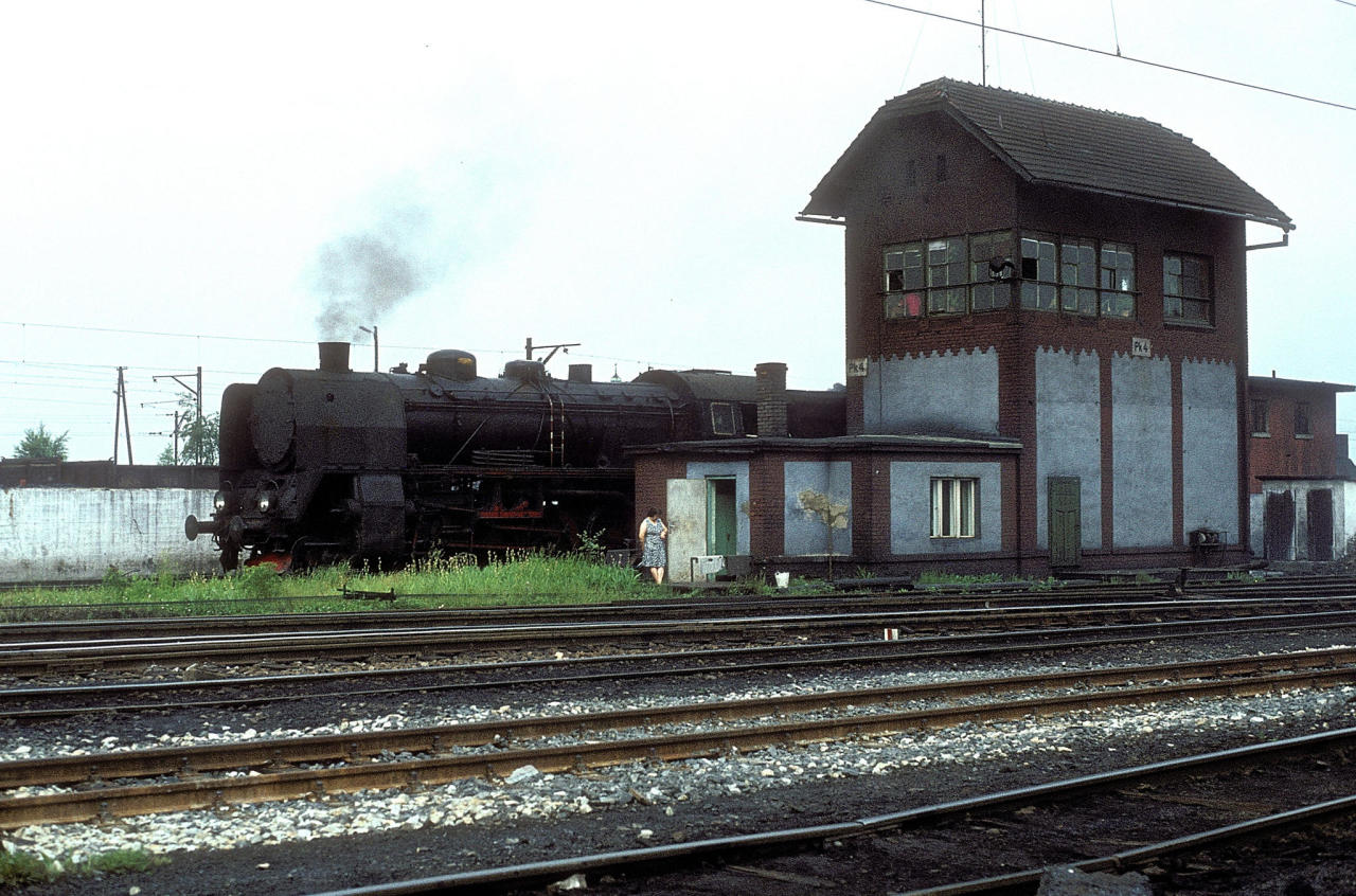 Stacja Pyskowice jeszcze za czasów świetności i intensywnego ruchu pociągów zarówno pasażerskich jak też towarowych. Na pierwszym planie nieczynna obecnie nastawnia bramowa Pk5. Za nią fragment również nieczynnej dzisiaj nastawni Pk6. Pod bramą widać Ty45, po prawej zaś Sputnik id dalej - perony. Widok od strony wjazdów z Paczyny/Opola, kiedyś także Pyskowic Miasto w kierunku południowo-wschodnim.