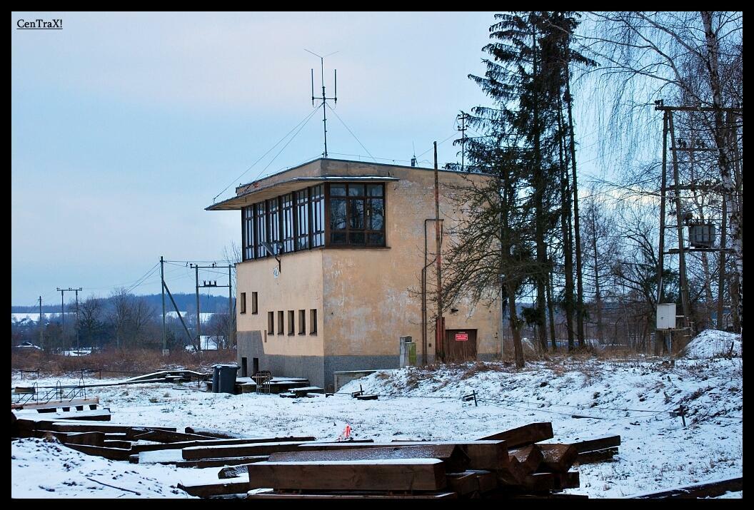 Nastawnia dysponująca KŁ stojąca na wyjeździe do Herbów Nowych. Widok w kierunku południowo-zachodnim.