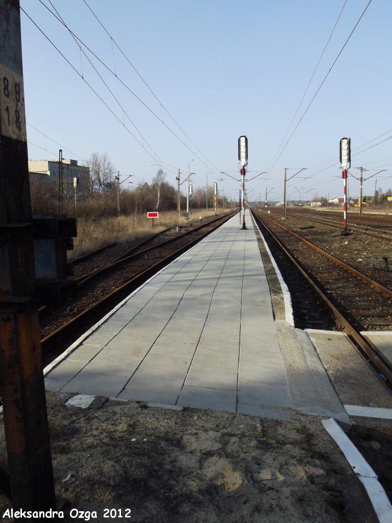 Nowy peron koło nieużywanych torów. Widok w kierunku północnym (Chorzew Siemkowice).