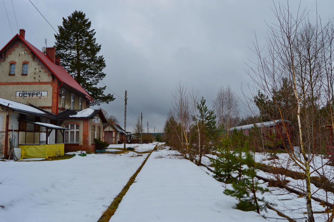 WM15A na stacji Ocypel. Udało się zajechać aż do Ocypla. Szlak jest ze Skórcza jest jeszcze przejezdny ale złomiarze wykazują aktywność i przejezdność ta może niedługo zostać utracona bezpowrotnie… Z prawej budynek dworca mieszczący dawniej nastawnię na parterze. W lewo Skórcz, w prawo Szlachta.