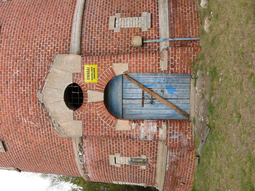 Ocypel. Wejście do wieży wodnej, obok zamurowane okienka.