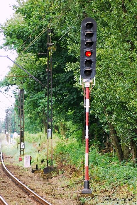 Sześciokomorowy semafor wjazdowy na stację Gliwice Łabędy od strony KK.