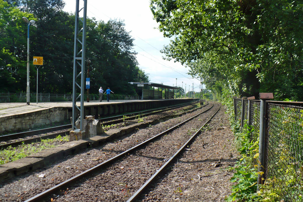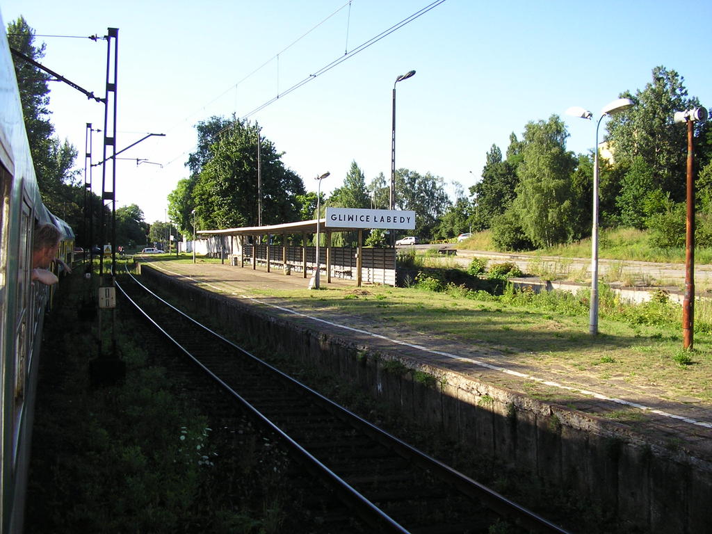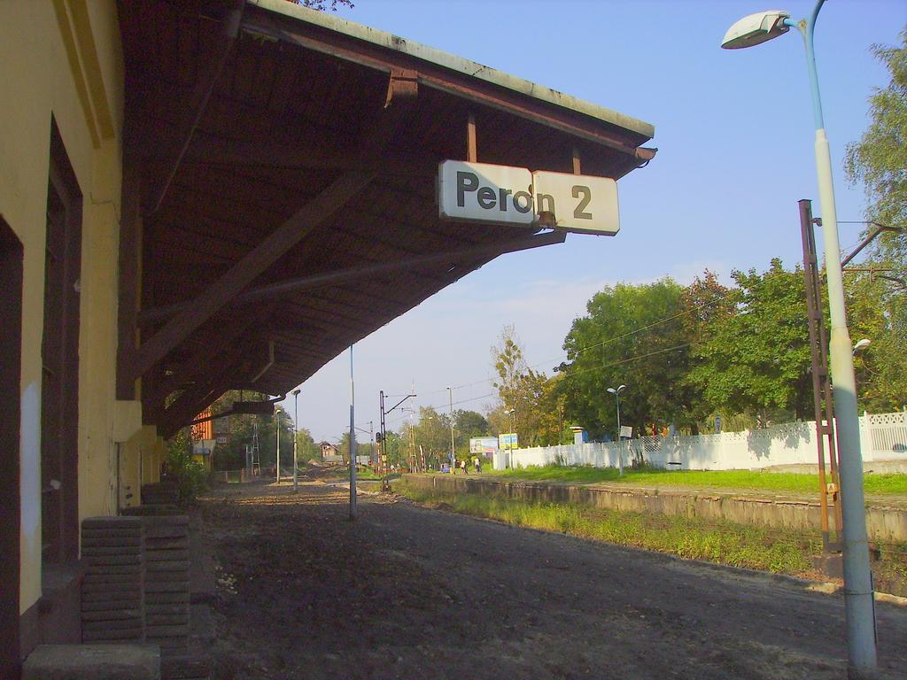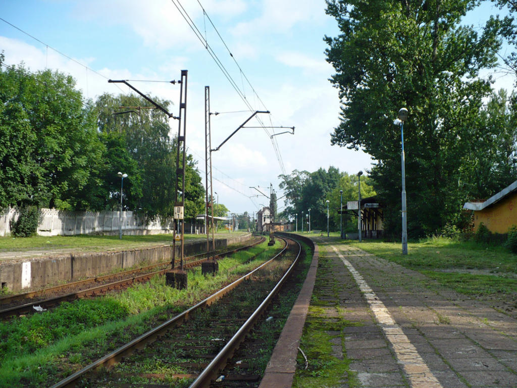 Nieczynny budynek dworca na peronie 2. Obecnie sklep z antykami. W lewo stacja Gliwice, w prawo Pyskowice.