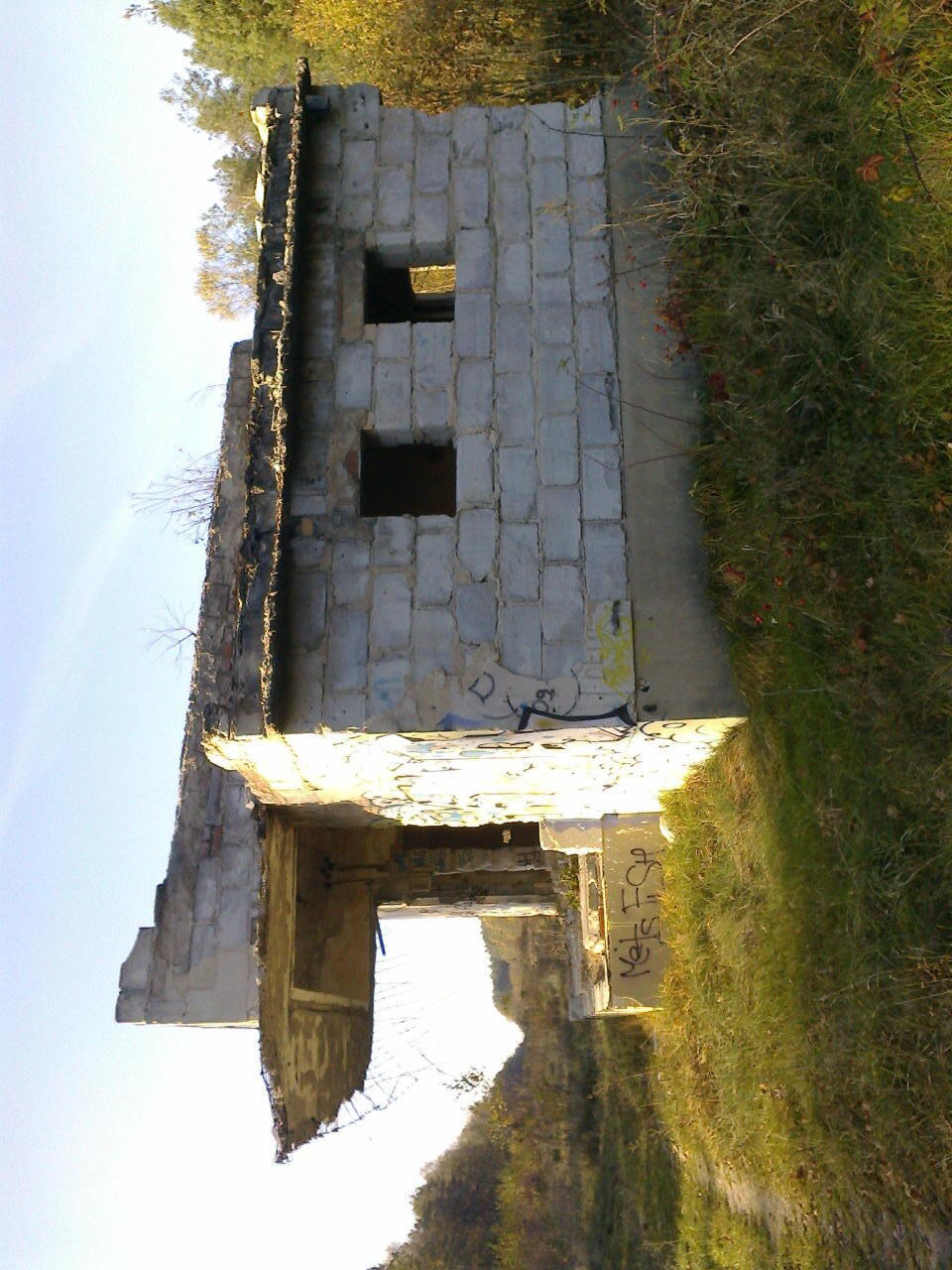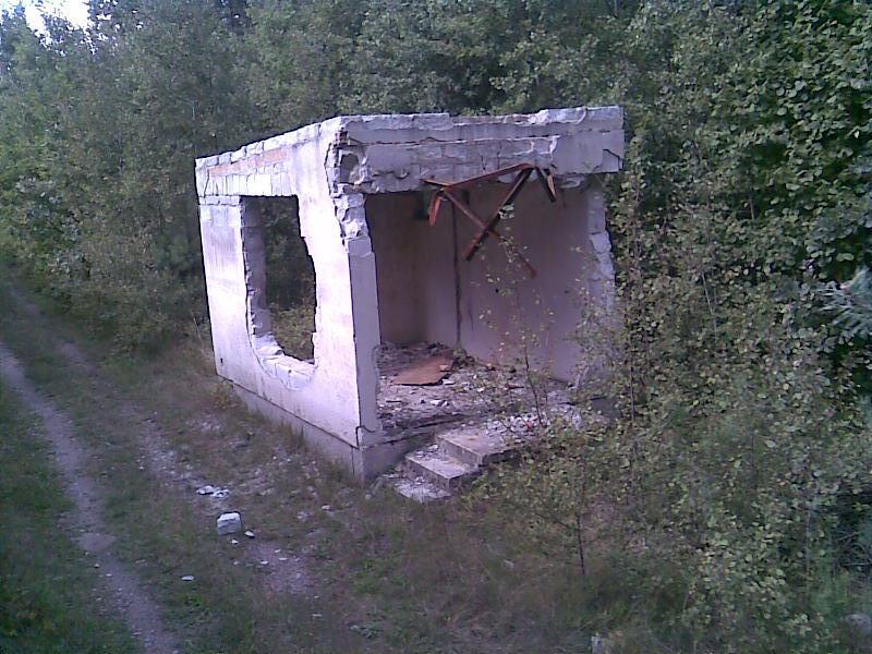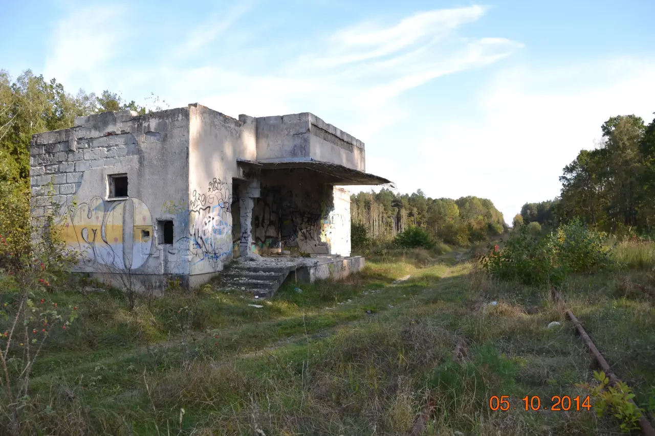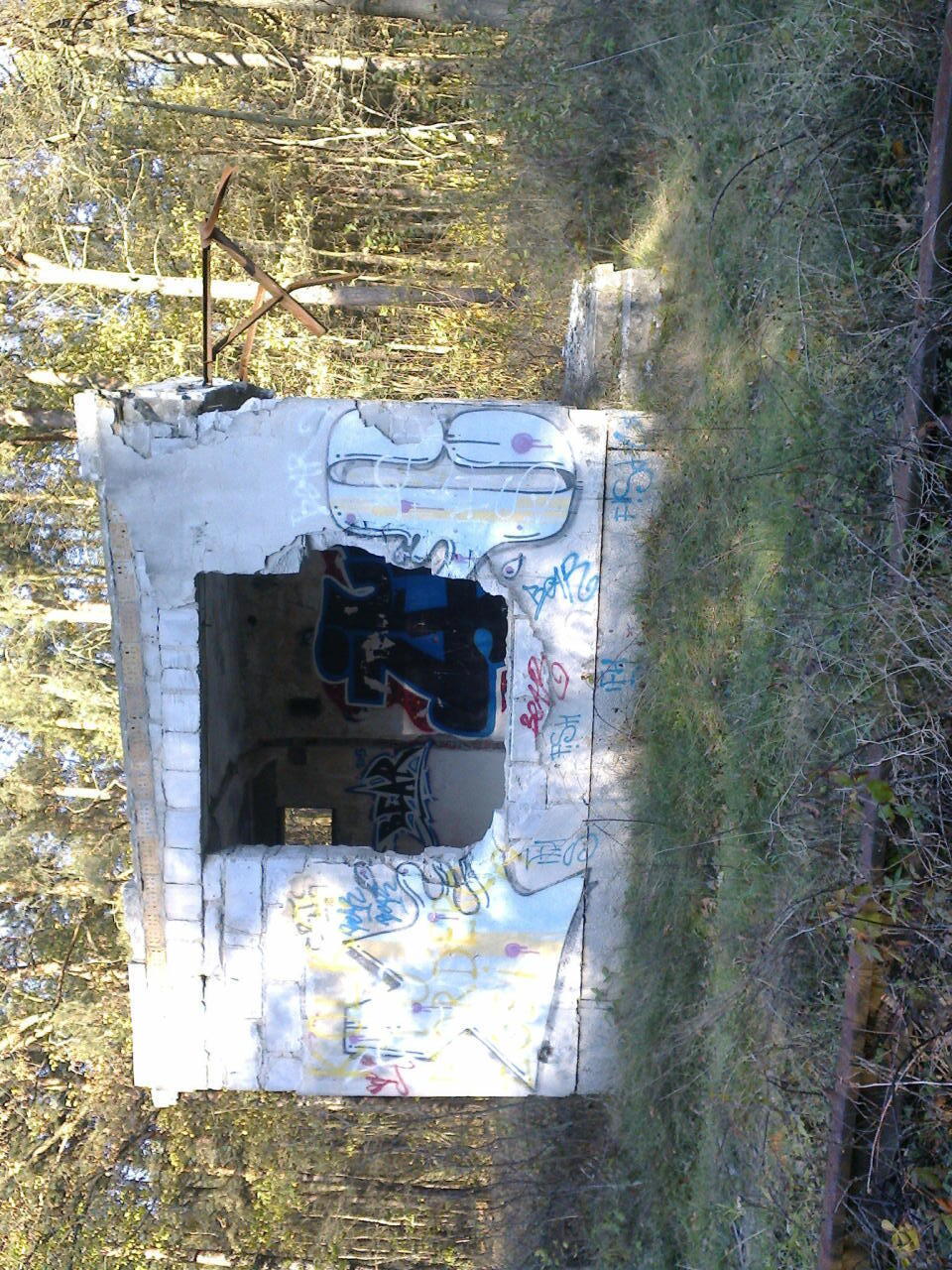 Ruiny dawnej nastawni dysponującej. Czas i domorośli artyści zrobili swoje.