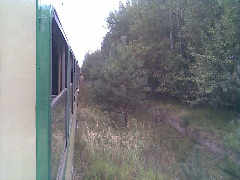 Kownatki, widok na krawędź peronu drugiego z pociągu ITK widać ile to lat upłyneło kiedy był drugi tor na tej stacji: (.