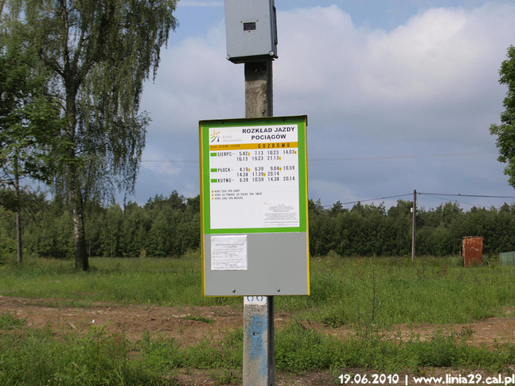 Opis ogólny: Z GOZDOWA odjeżdżają pociągi osobowe do PŁOCKA, KUTNA i SIERPCA. Pierwszy pociąg pasażerski wjechał na tutejsze tory dn. 09.12.2007, po 11-letniej przerwie. (info: ADAM PIOTROWSKI, 2007-12-22) Opis budynków: Widoczne fundamenty po budynku (kasa biletowa, poczekalnia ?), oraz dwa budynki zdewastowane. (info: Krzysztof Marciniak, 2007-12-09) |