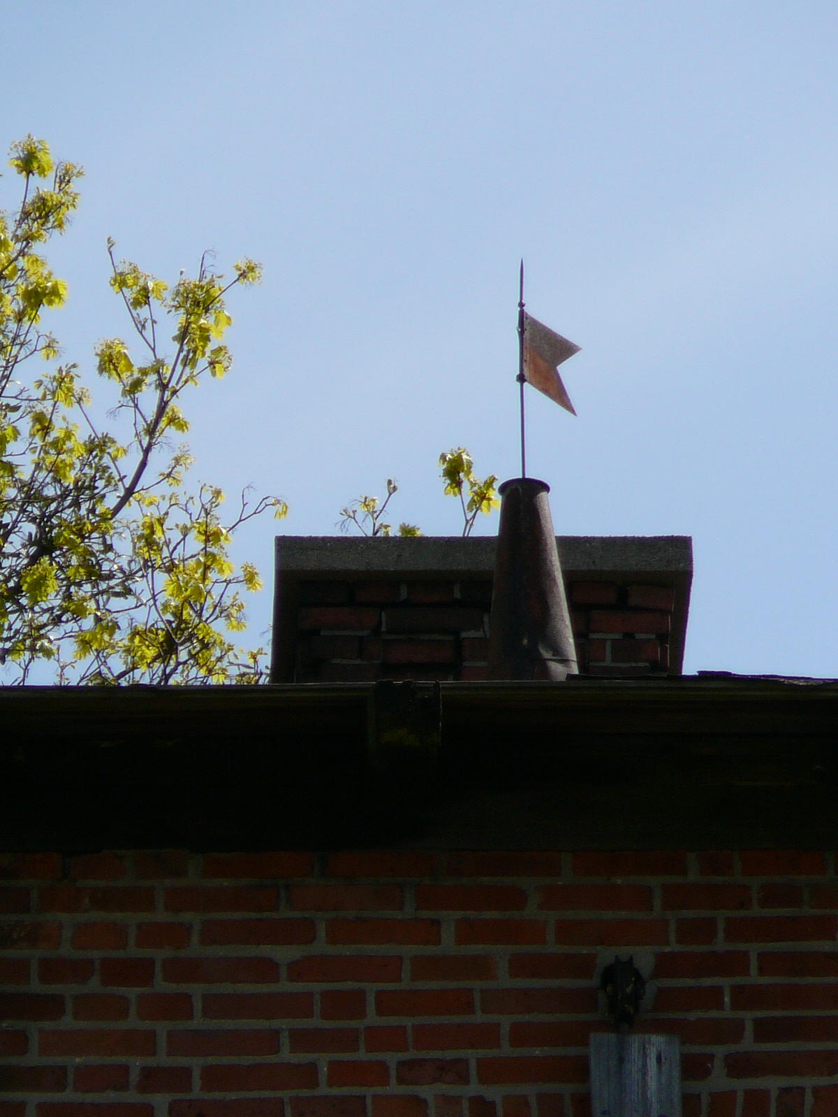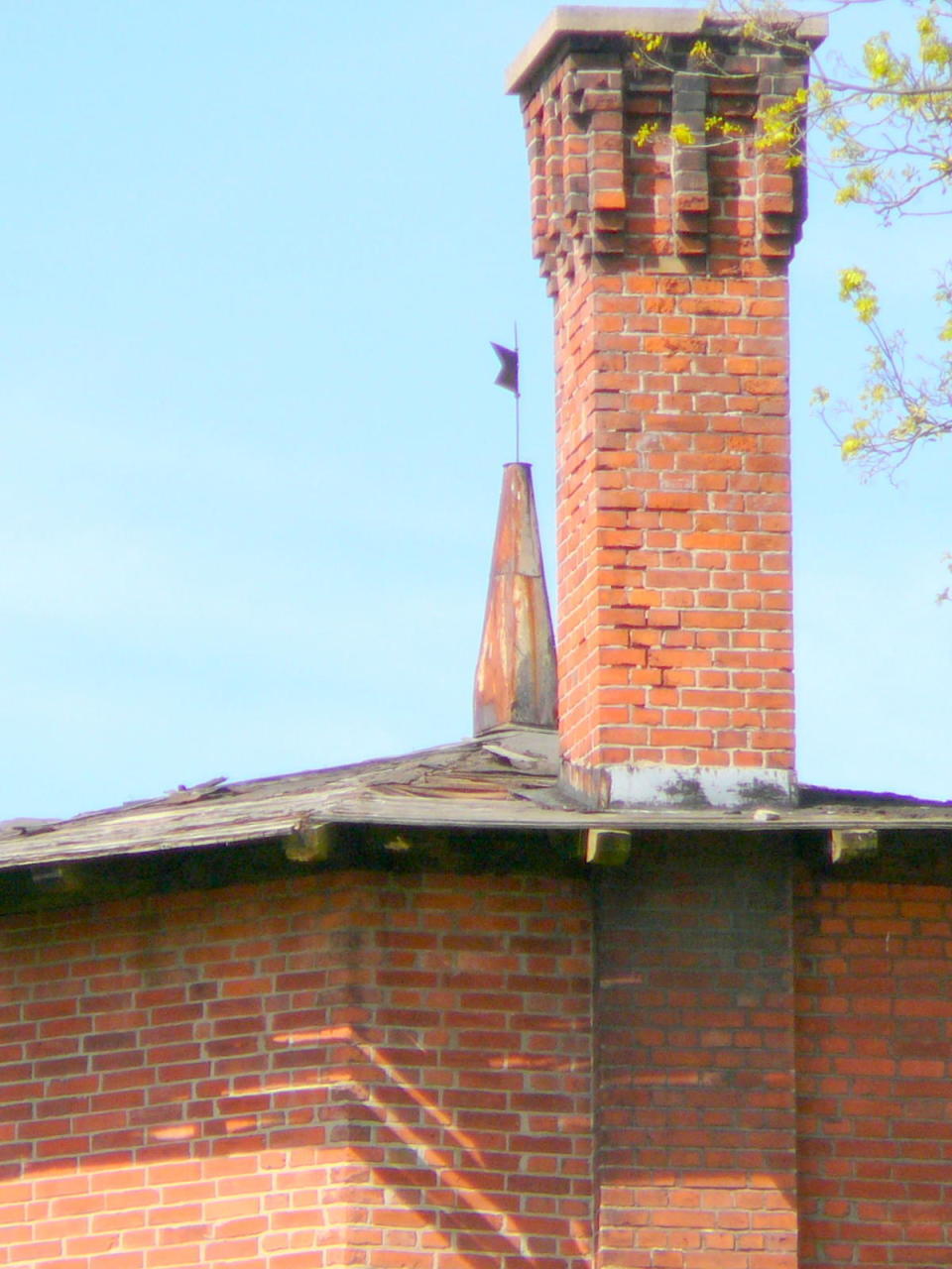 Waplewo Wielkie. Dach wieży wodnej z kominem.