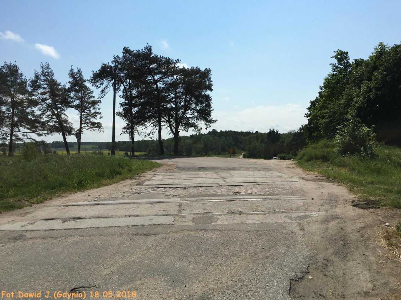 Pozostałości po przejeździe kolejowym. W lewo Małdyty w prawo Malbork.