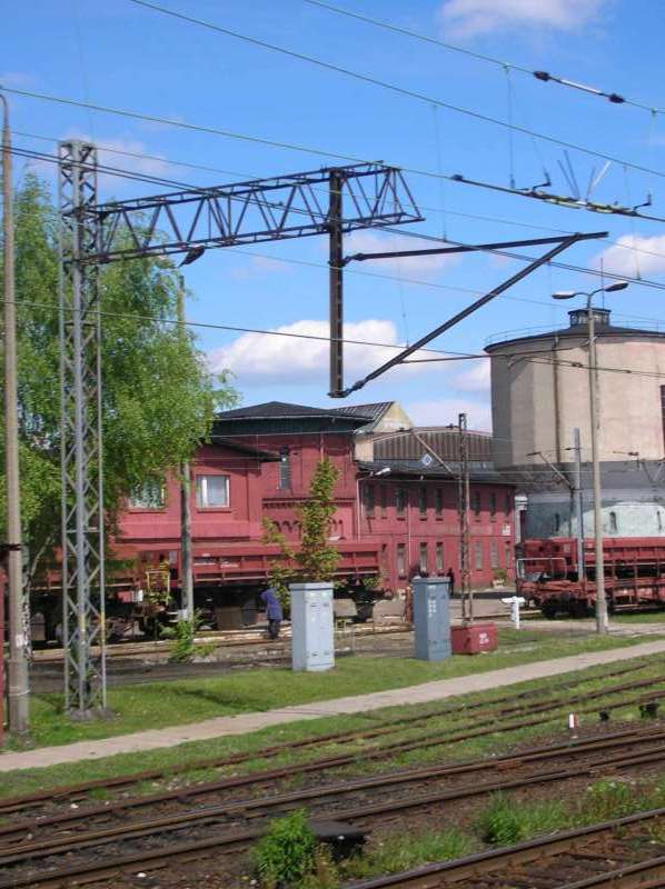 - kolejowa wieża wodna nr 3 w kształcie (rzutu) ośmiokąta wydłużonego stoi obok wieży nr 2, zamieniona na stację transformatorową,