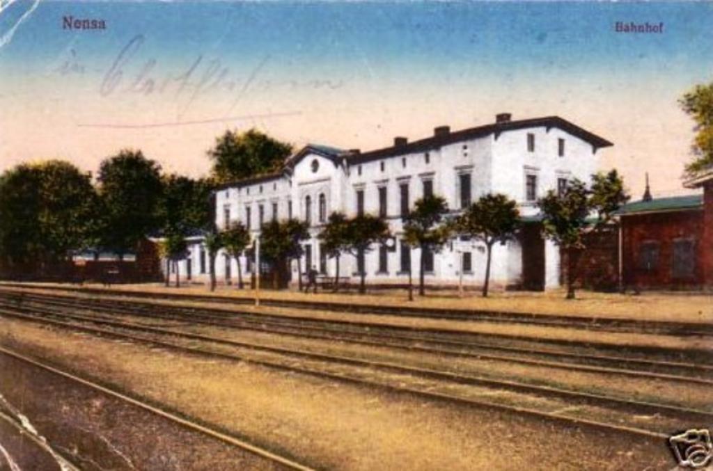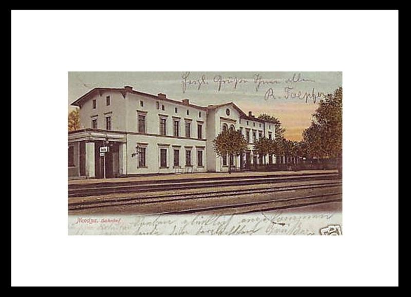 Stara pocztówka. Budynek dworca (strona zachodnia, kędzierzyńska). Widok w kierunku północno-wschodnim; w lewo Kędzierzyn-Koźle, w prawo Racibórz Markowice (dalej stacja Racibórz i Olza).