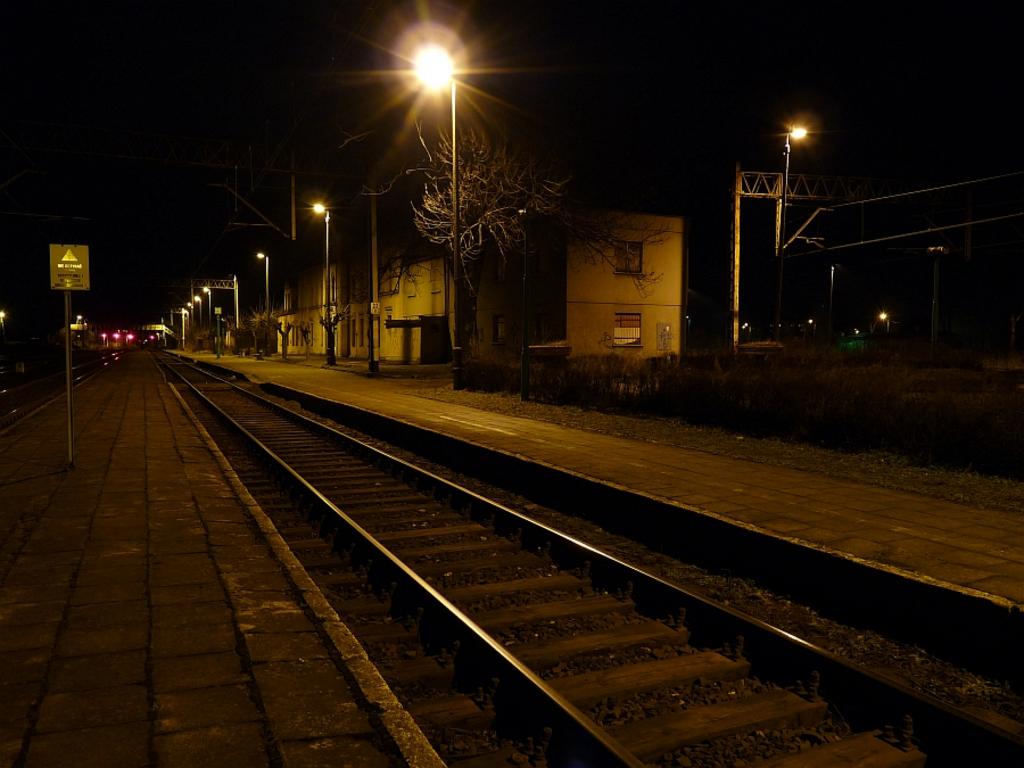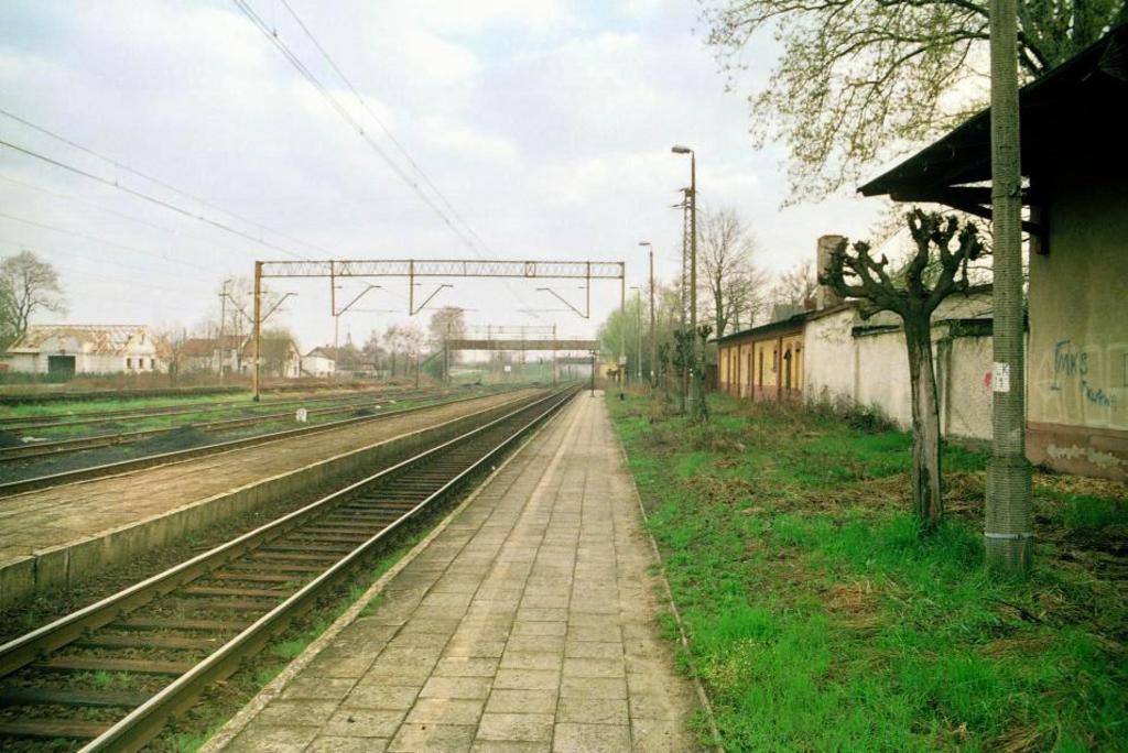 22.9km - widok z peronu drugiego w kierunku północnym (Kędzierzyn-Koźle). Zachodnia strona dworca (z prawej, poza kadrem). Po prawej, na końcu peronu widać nastawnię wykonawczą Na1.