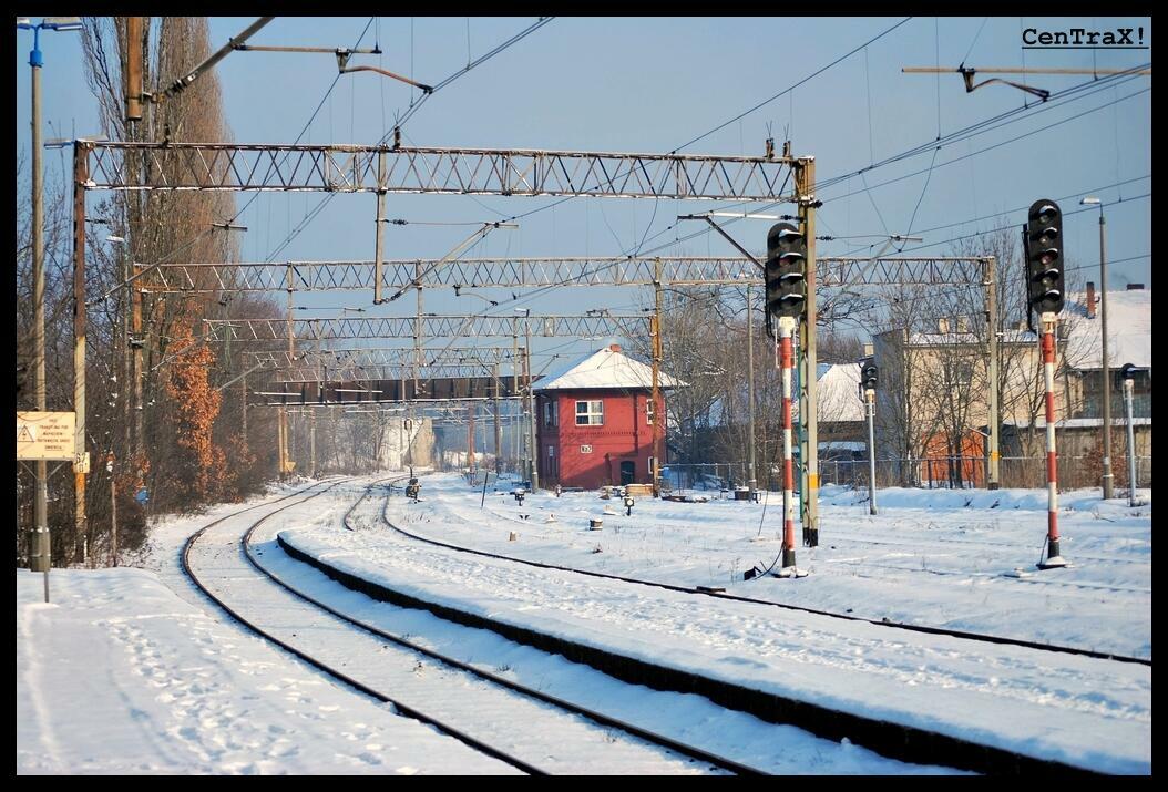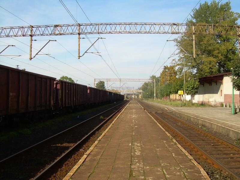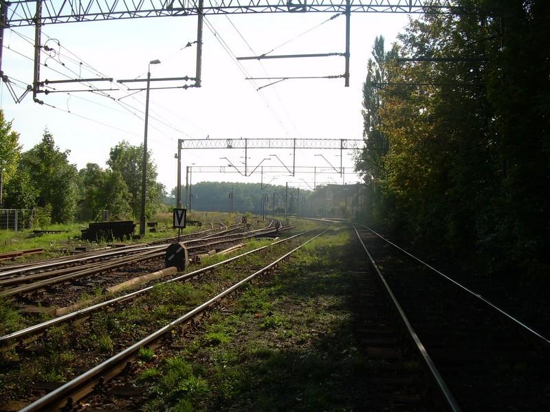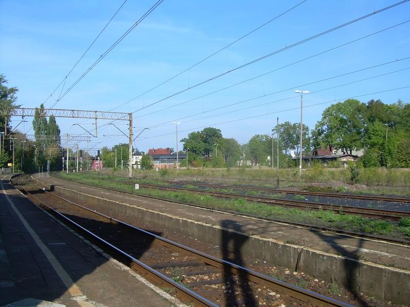 Wjazd od strony Suminy/Rybnika. W tle perony 3, 4 oraz budynek dworca. Widok w kierunku południowo-zachodnim.