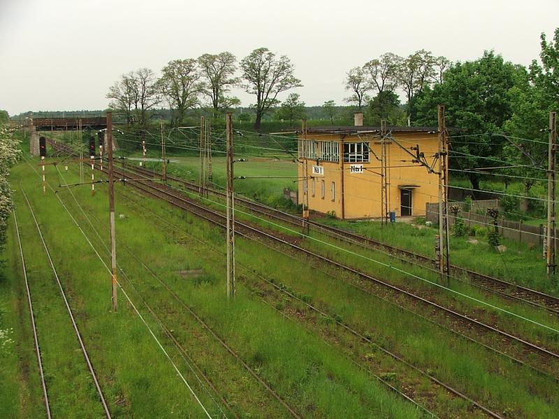 Nędza - nastawnia dysponująca Na. Widok w kierunku północnym, od strony wjazdu z Raciborza Markowic (stacji Racibórz i Olzy).
